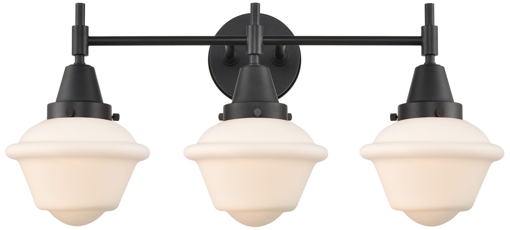 Caden Oxford 25.5"W 3 Light Matte Black Bath Vanity Light w/ White Sha