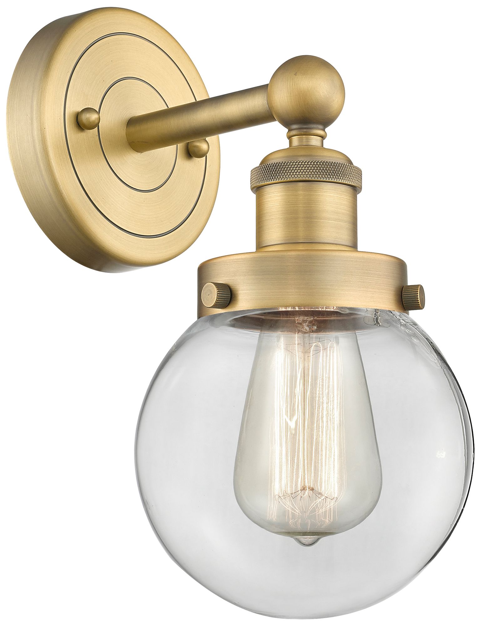Small Beacon 10"High Brushed Brass Sconce With Clear Shade