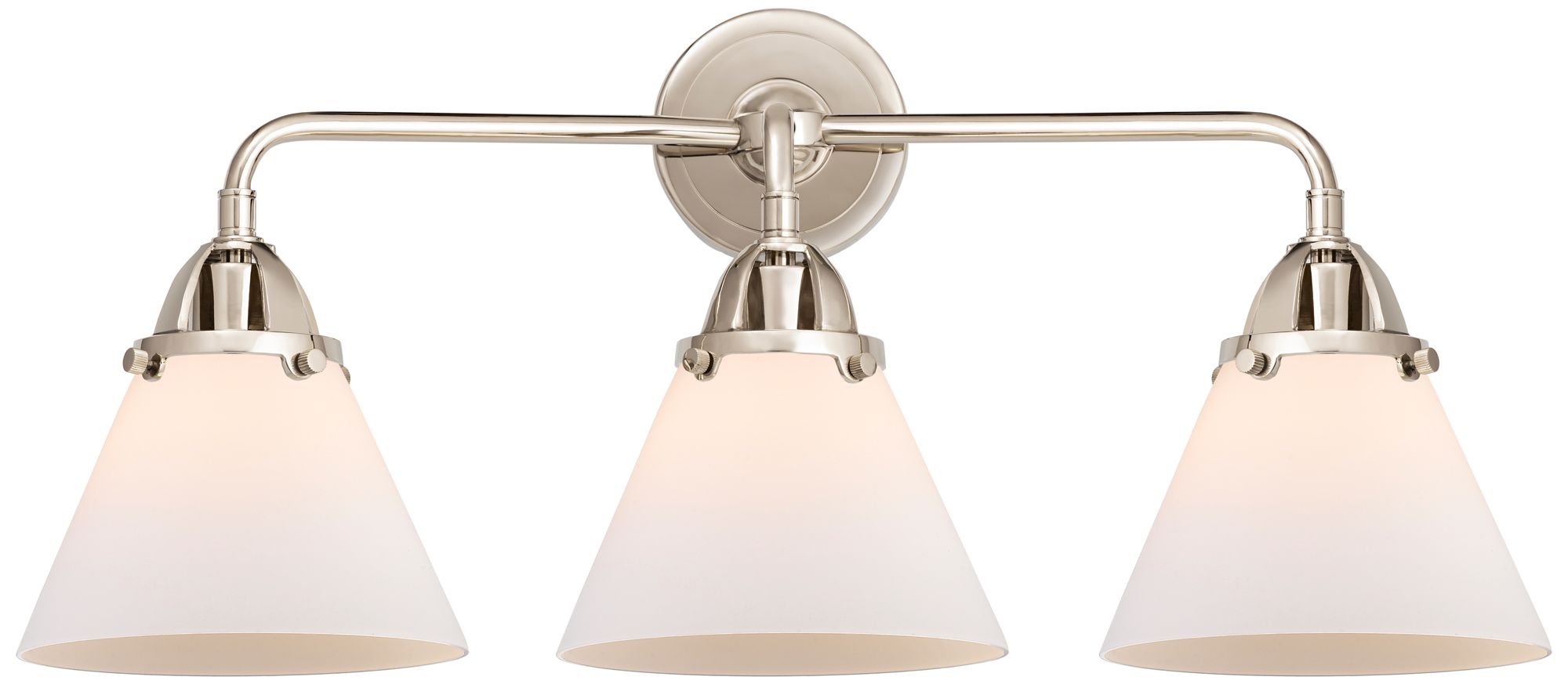Nouveau 2 Cone 8" 3 Light 26" Bath Light - Polished Nickel - Whit