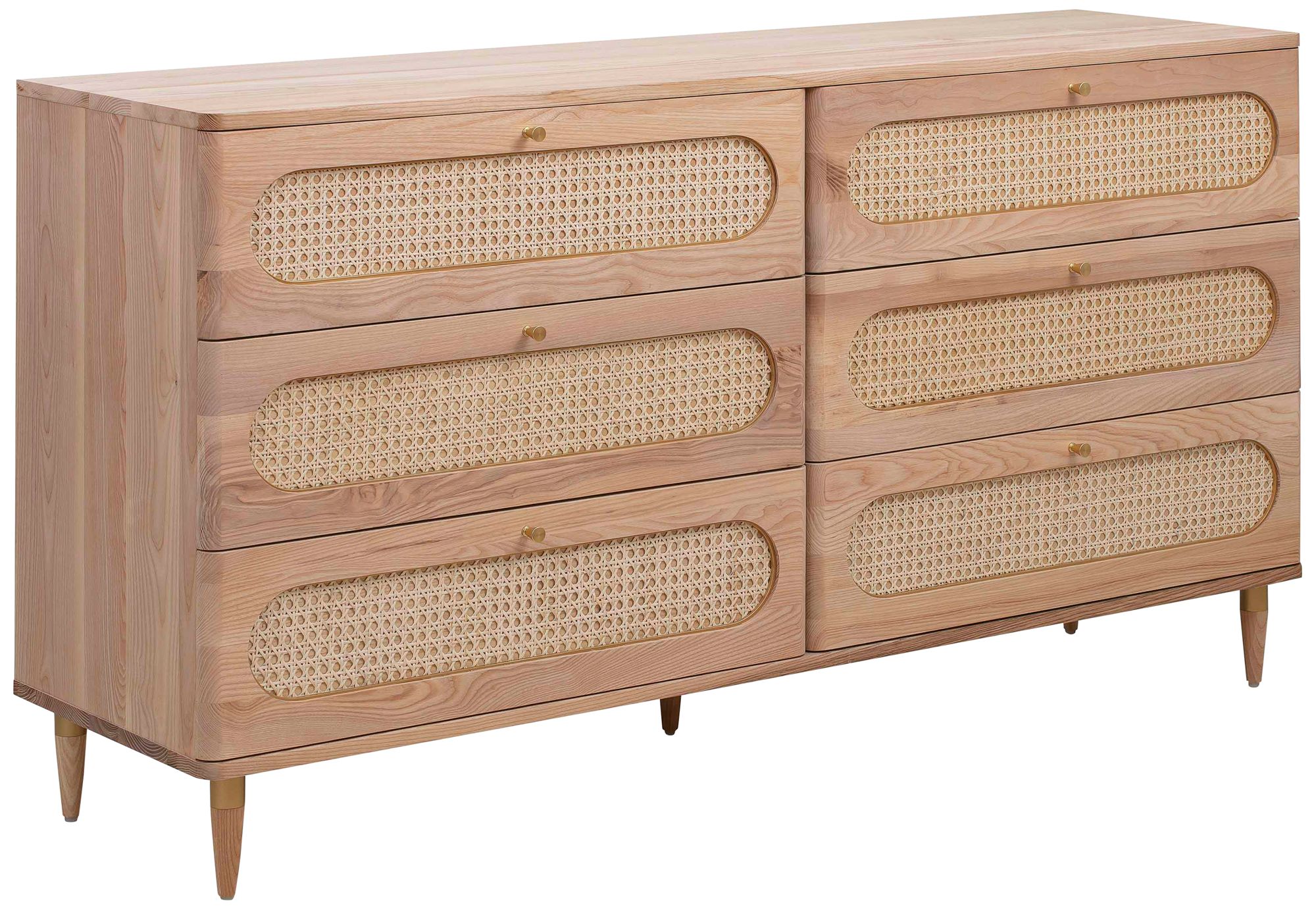 TOV Carmen 63" Wide Natural Wood and Cane 6-Drawer Dresser