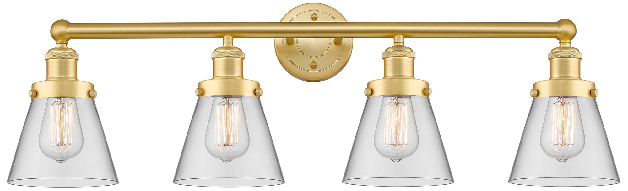 Cone 33.5" Wide 4 Light Satin Gold Bath Vanity Light With Clear Shade