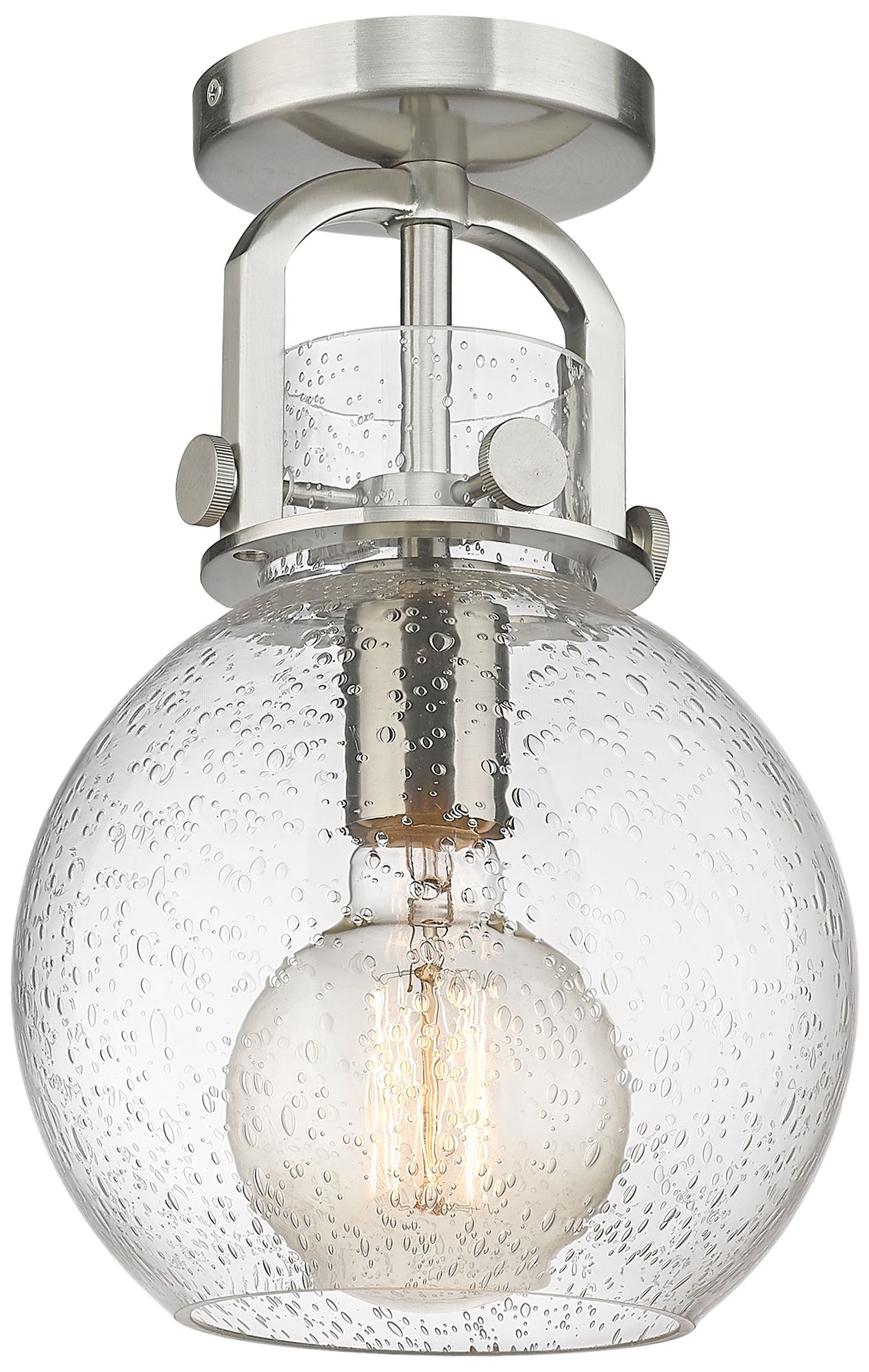Newton Sphere 8" Wide Satin Nickel Flush Mount with Seedy Shade