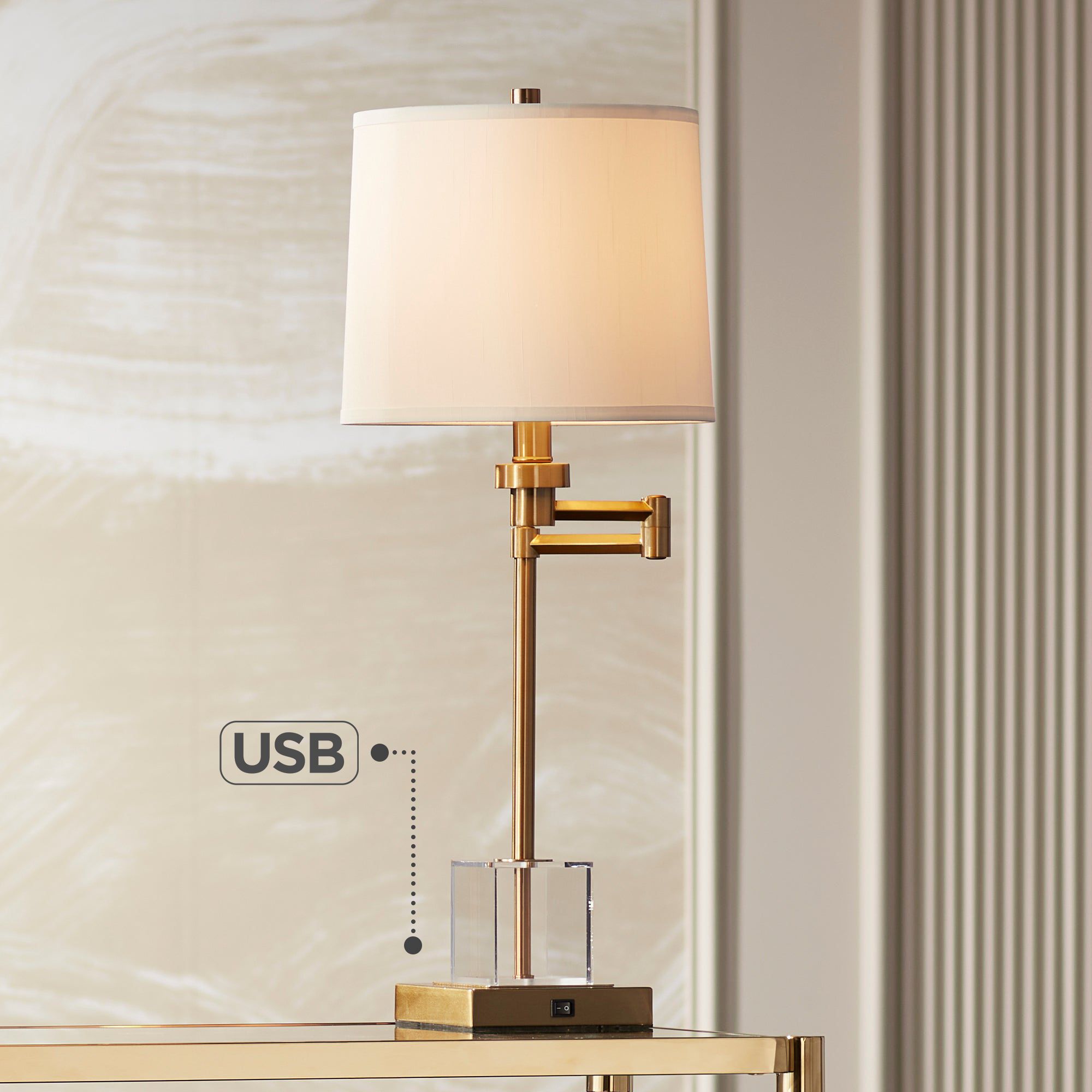 Possini Euro Carnegie 27" Acrylic and Warm Gold Swing Arm Table Lamp