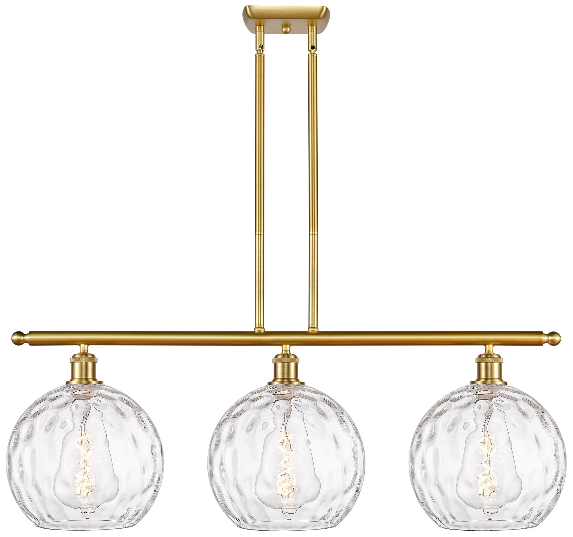 Athens Water Glass 3 Light 37" Island Light - Satin Gold - Clear
