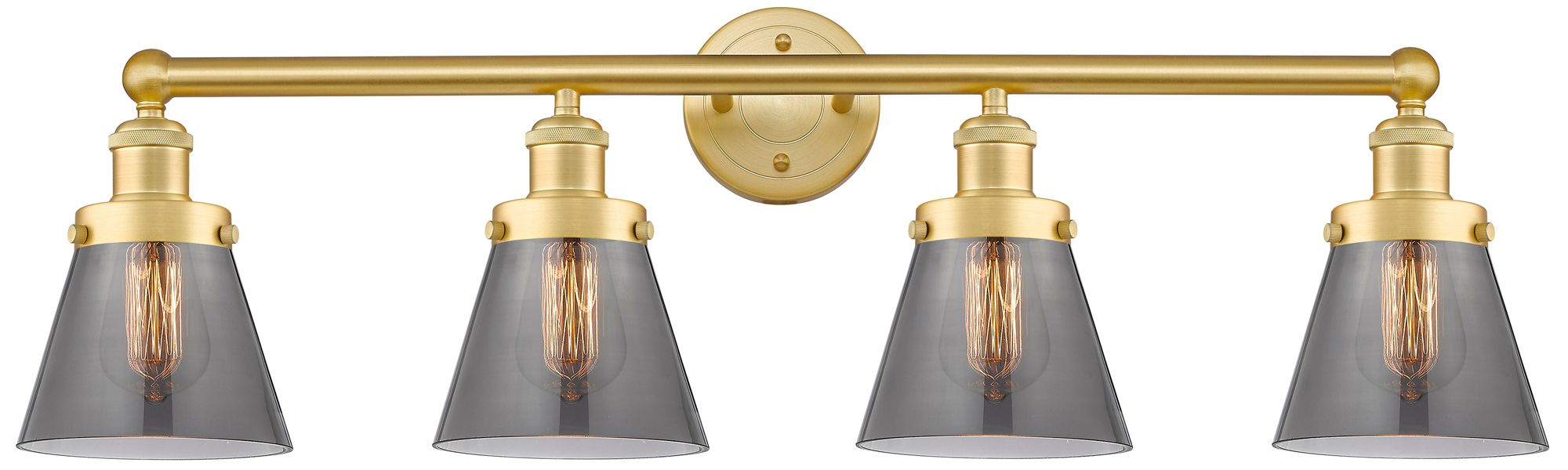 Cone 33.5" Wide 4 Light Satin Gold Bath Vanity Light w/ Plated Smoke S