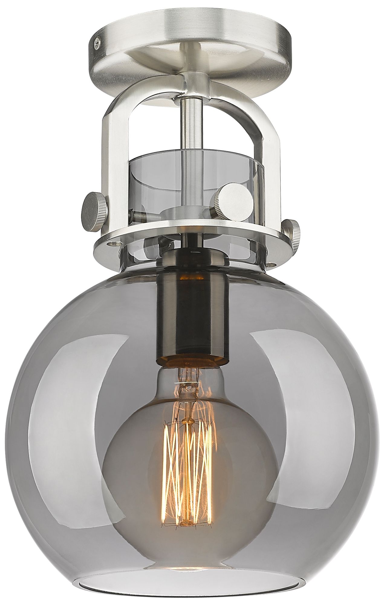 Newton Sphere 8" Wide Satin Nickel Flush Mount with Smoke Shade