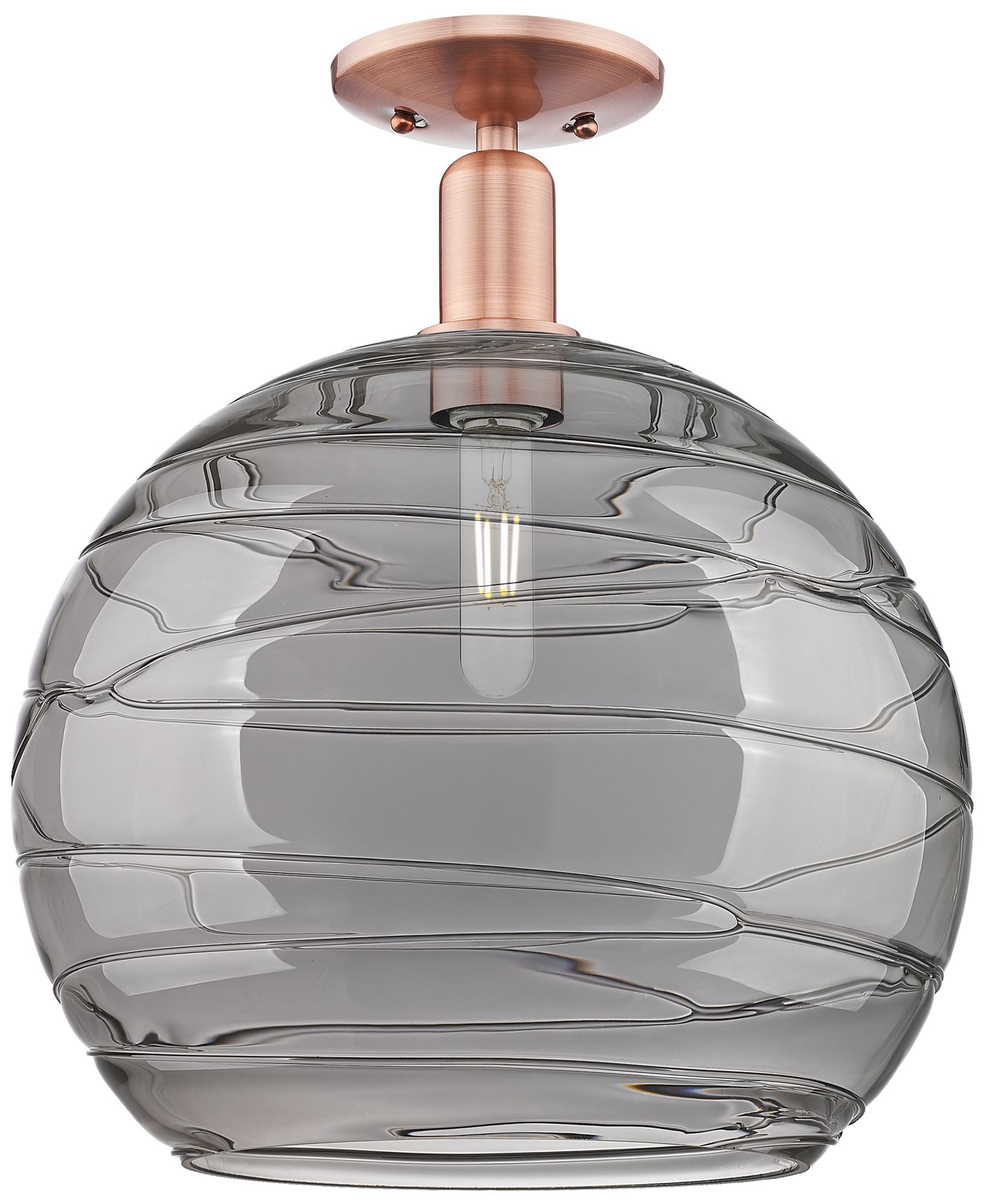 Arcadia Athens 14"W Copper Semi-Flush w/ Light Smoke Deco Swirl Shade