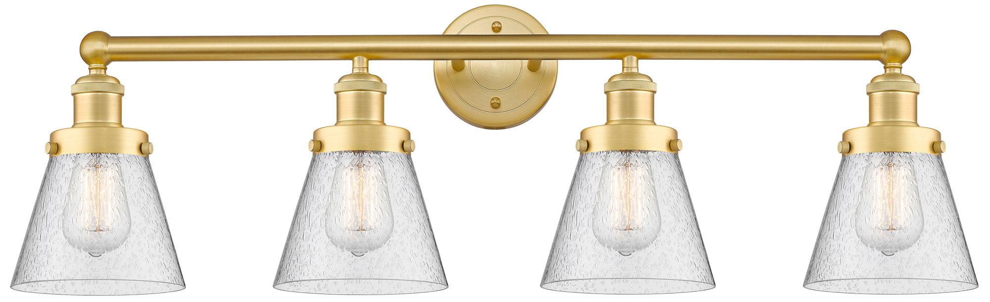 Cone 33.5" Wide 4 Light Satin Gold Bath Vanity Light With Seedy Shade