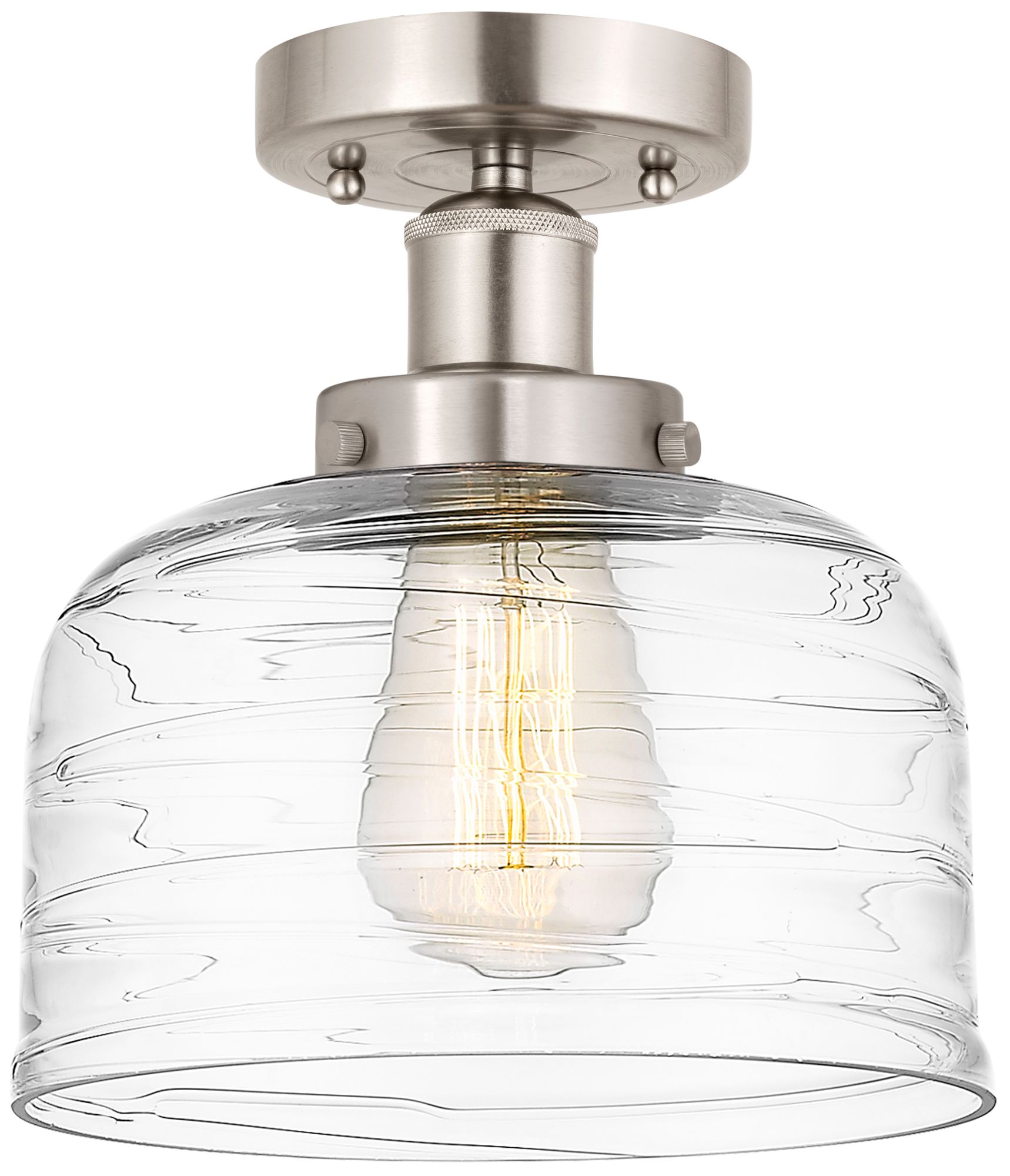 Edison Large Bell 7" Brushed Satin Nickel Semi Flush Mount w/ Deco Sha