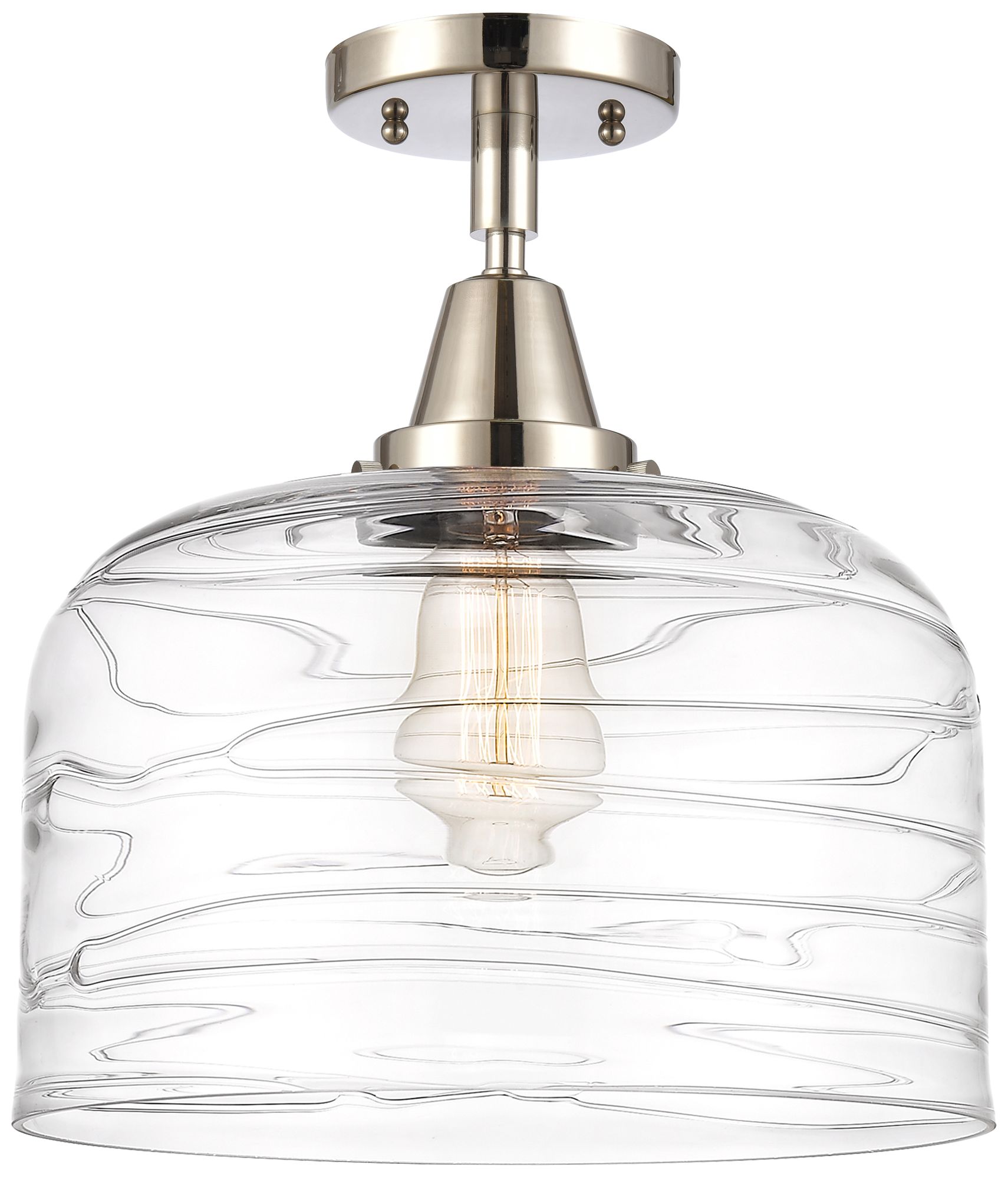 Caden Bell 12" Flush Mount - Polished Nickel - Clear Deco Swirl Shade