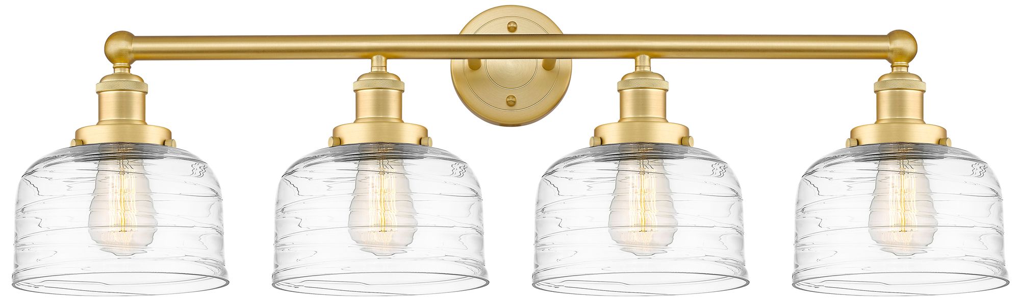 Large Bell 33.5"W 4 Light Satin Gold Bath Vanity Light w/ Deco Swirl S