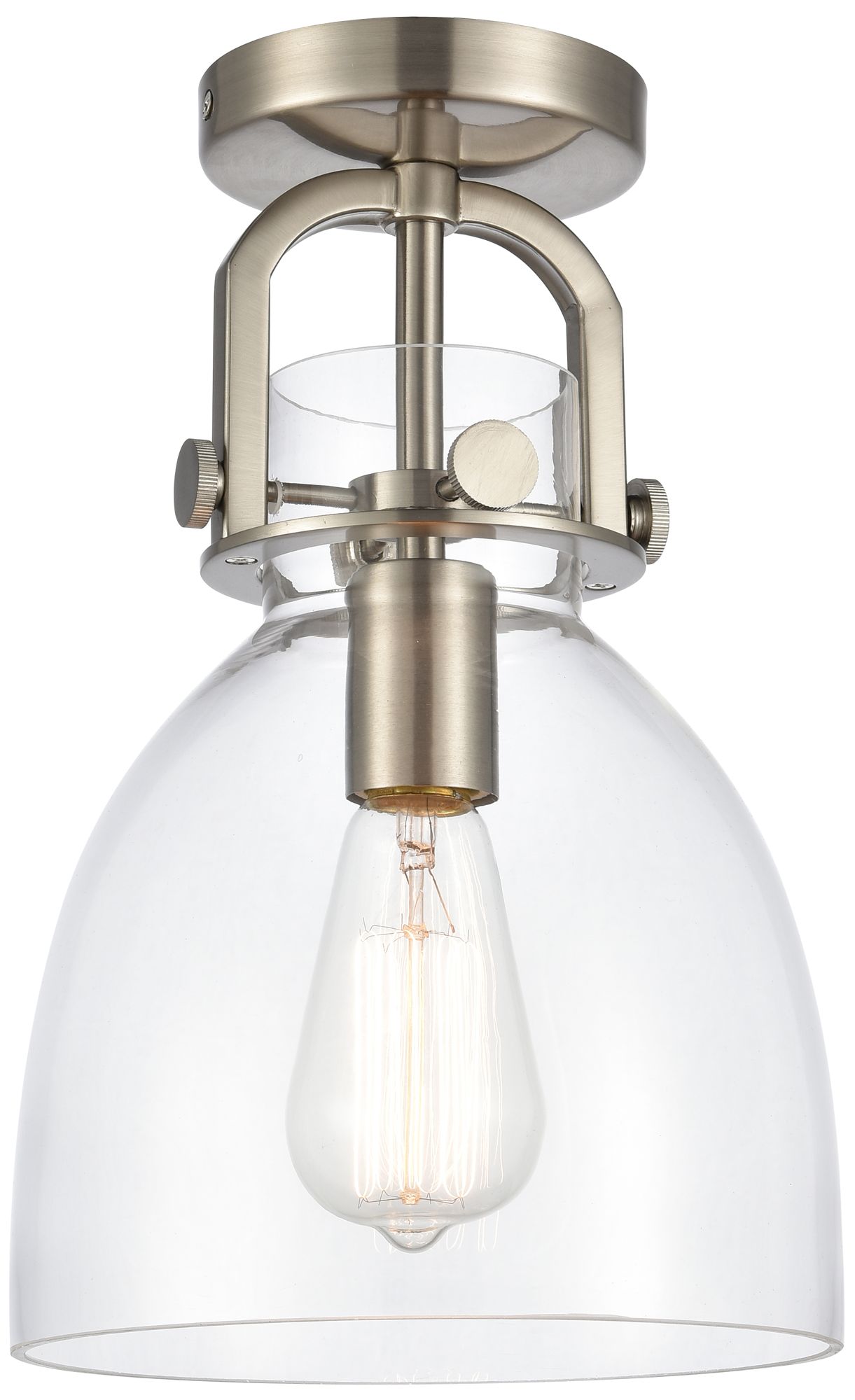Newton Bell 8" Wide Satin Nickel Flush Mount with Clear Shade