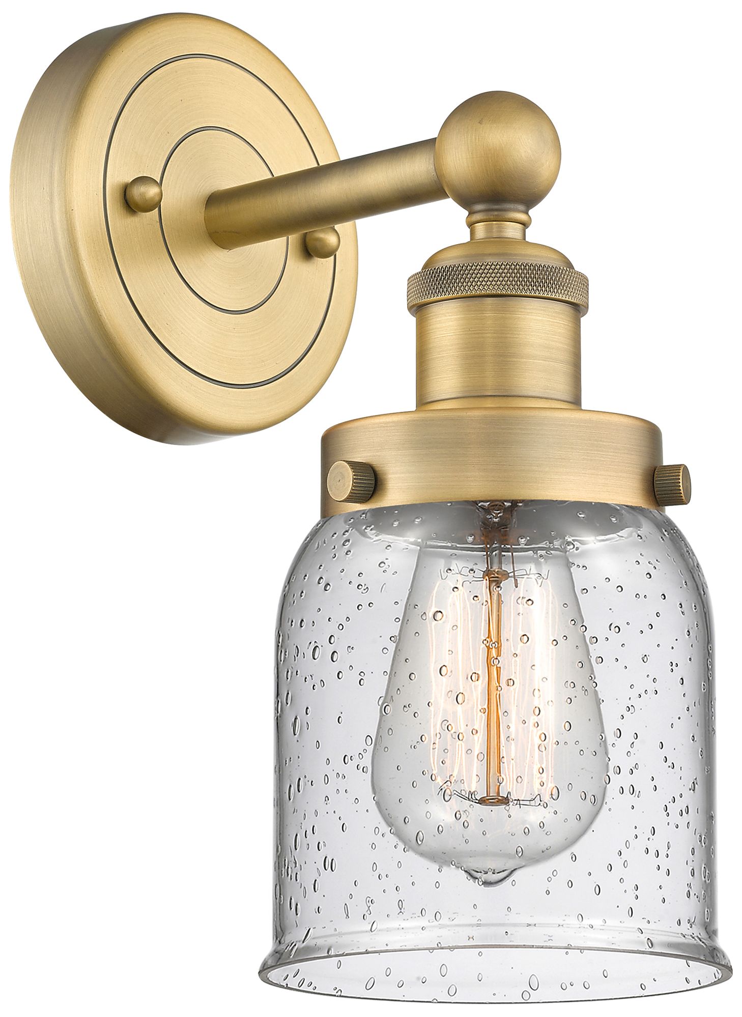 Small Bell 10"High Brushed Brass Sconce With Seedy Shade