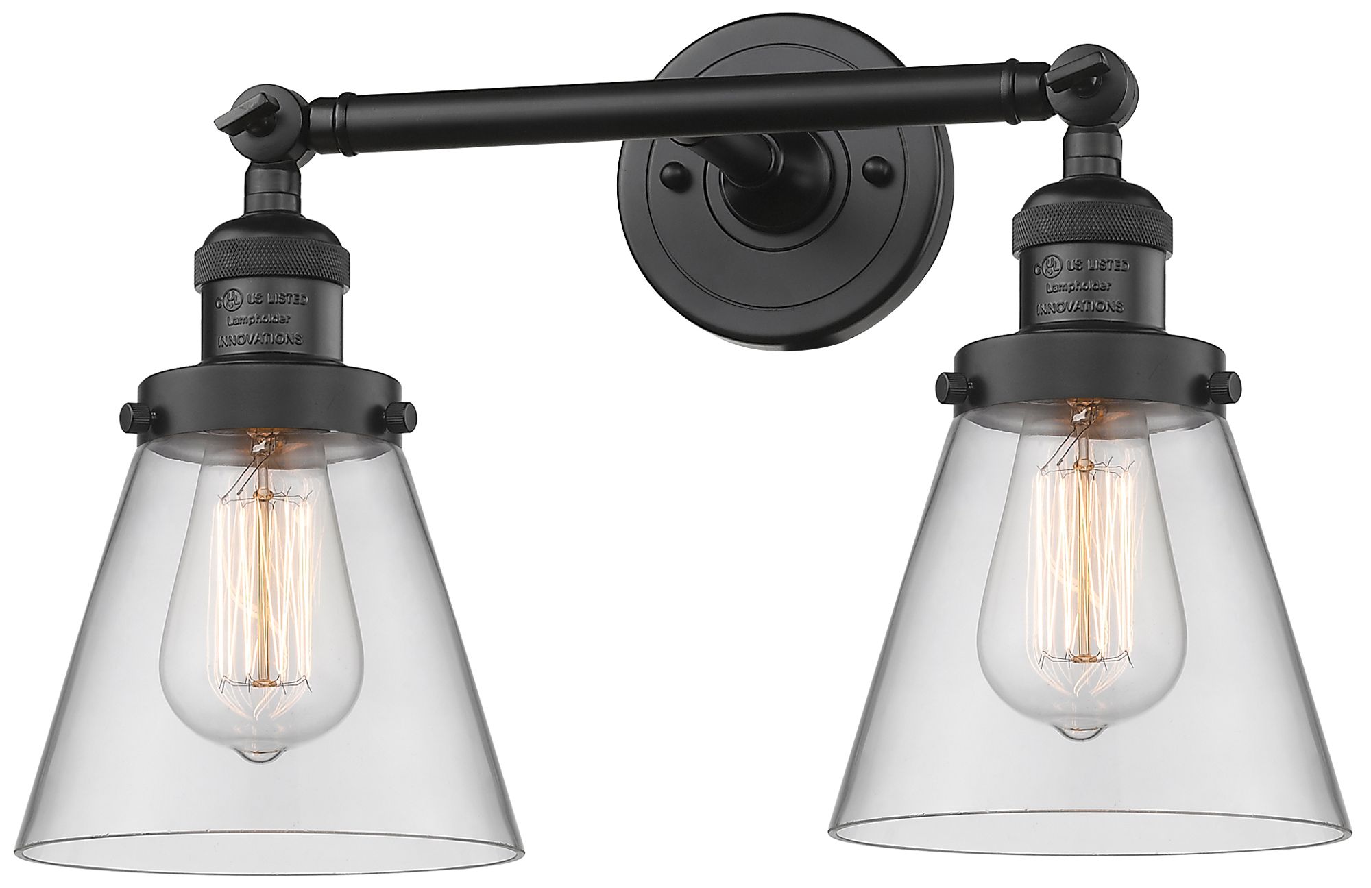 Cone 6" 2 Light 16" Tiltable LED Bath Light - Matte Black - Clear