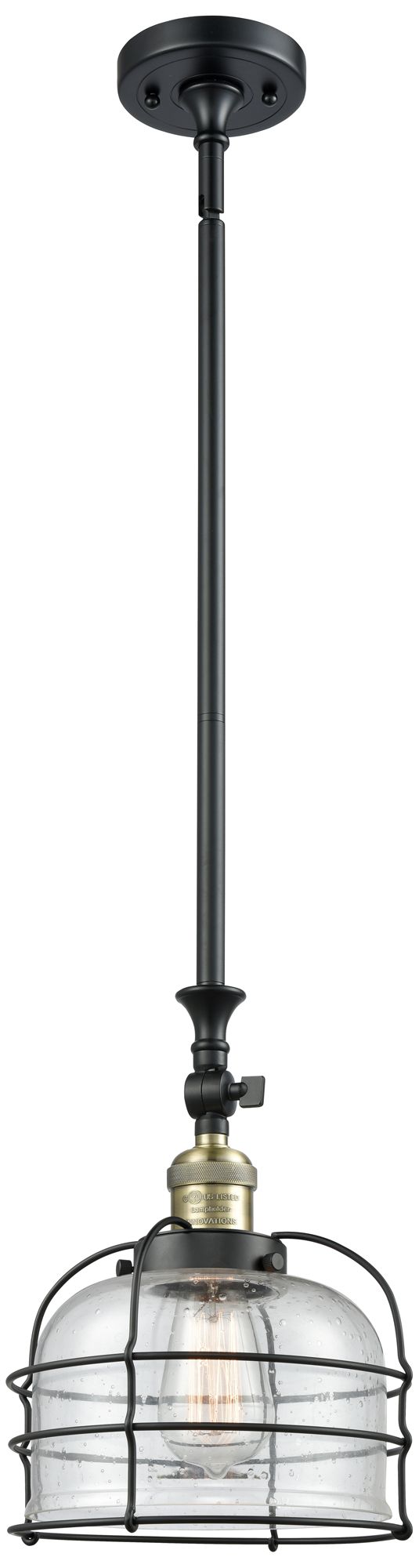 Franklin Restoration Bell Cage 9" Black Brass Mini Pendant w/ Seedy Sh