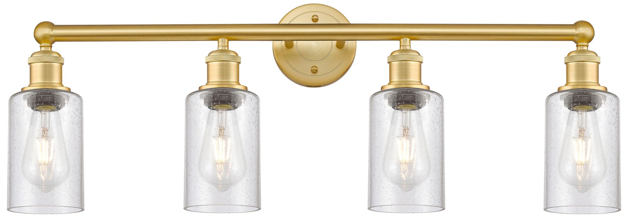 Clymer 30.88" Wide 4 Light Satin Gold Bath Vanity Light With Seedy Sha