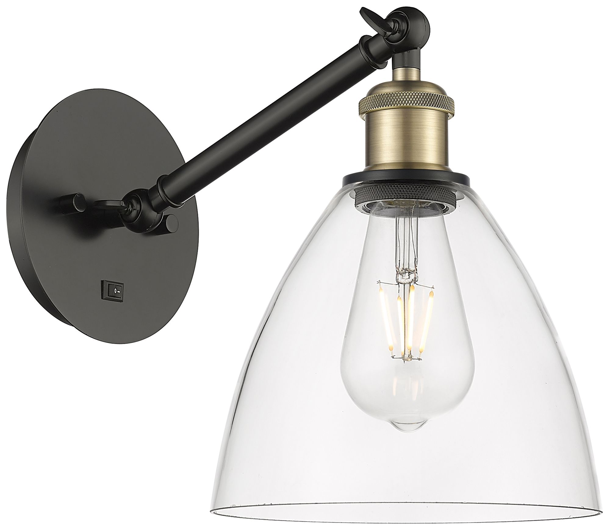 Ballston Bristol Glass 8" Incandescent Sconce - Black Brass - Clear Sh