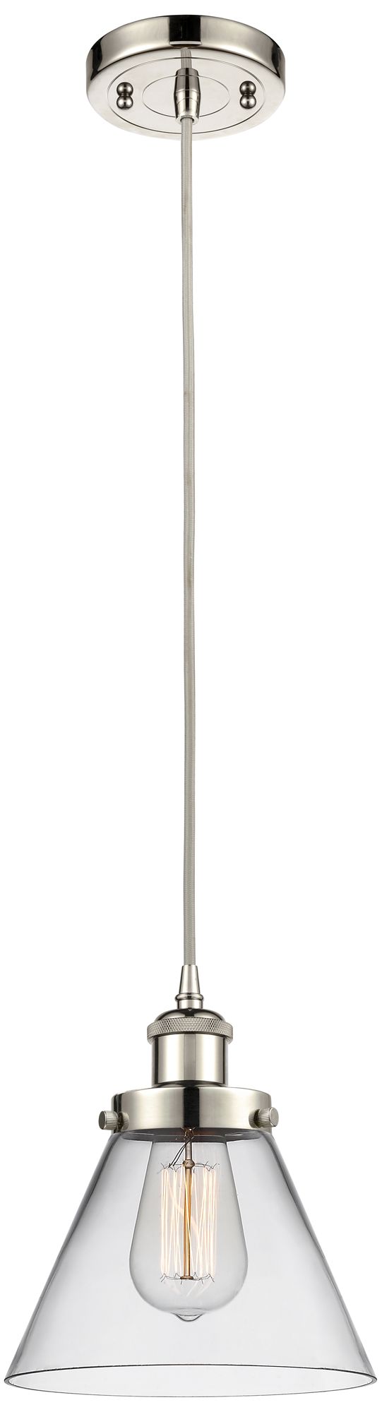 Ballston Urban Cone 8" Polished Nickel Corded Mini Pendant w/ Clear Sh