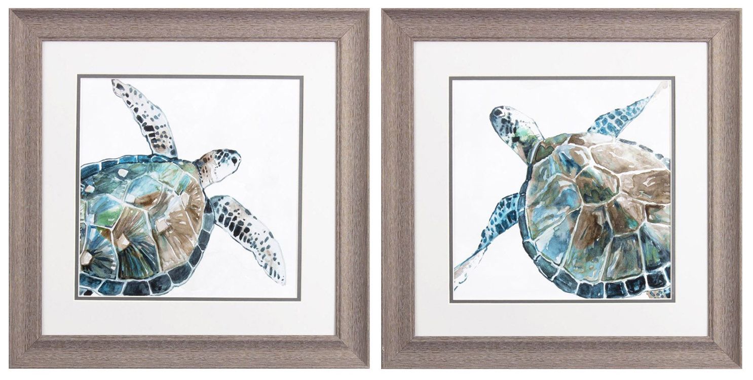 Neutral Sea Turtle 19"W x 19"H Framed Art Set of 2