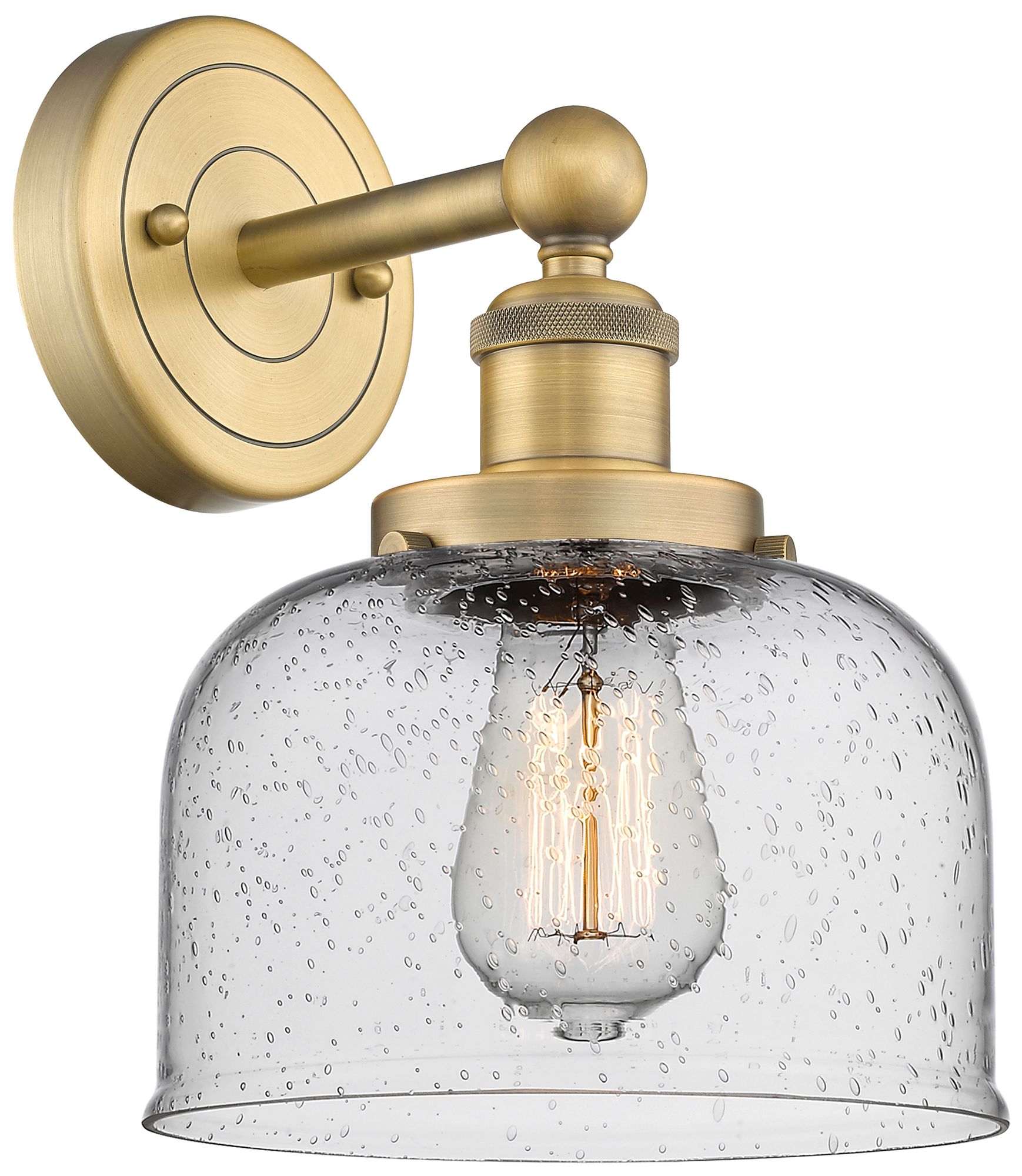 Large Bell 10"High Brushed Brass Sconce With Seedy Shade