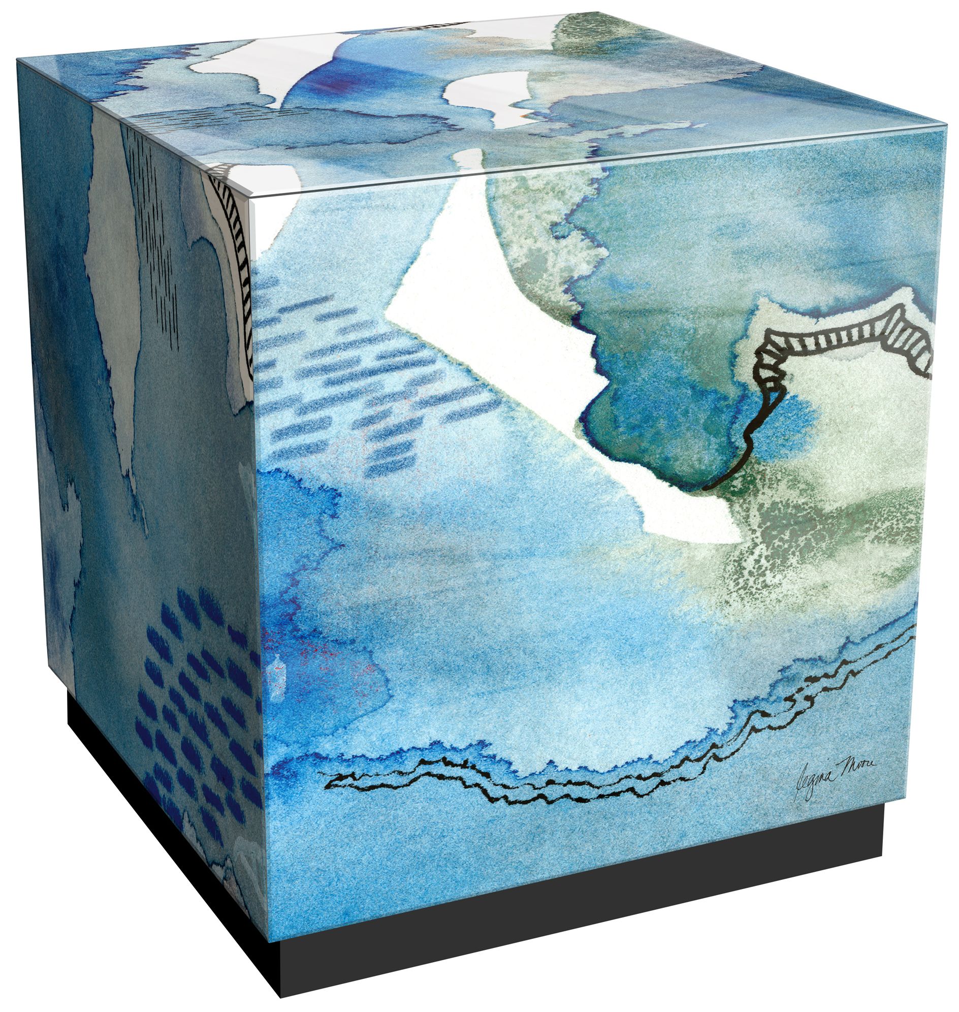 Subtle Blues I" Reverse Printed Beveled Art Glass Lamp Table