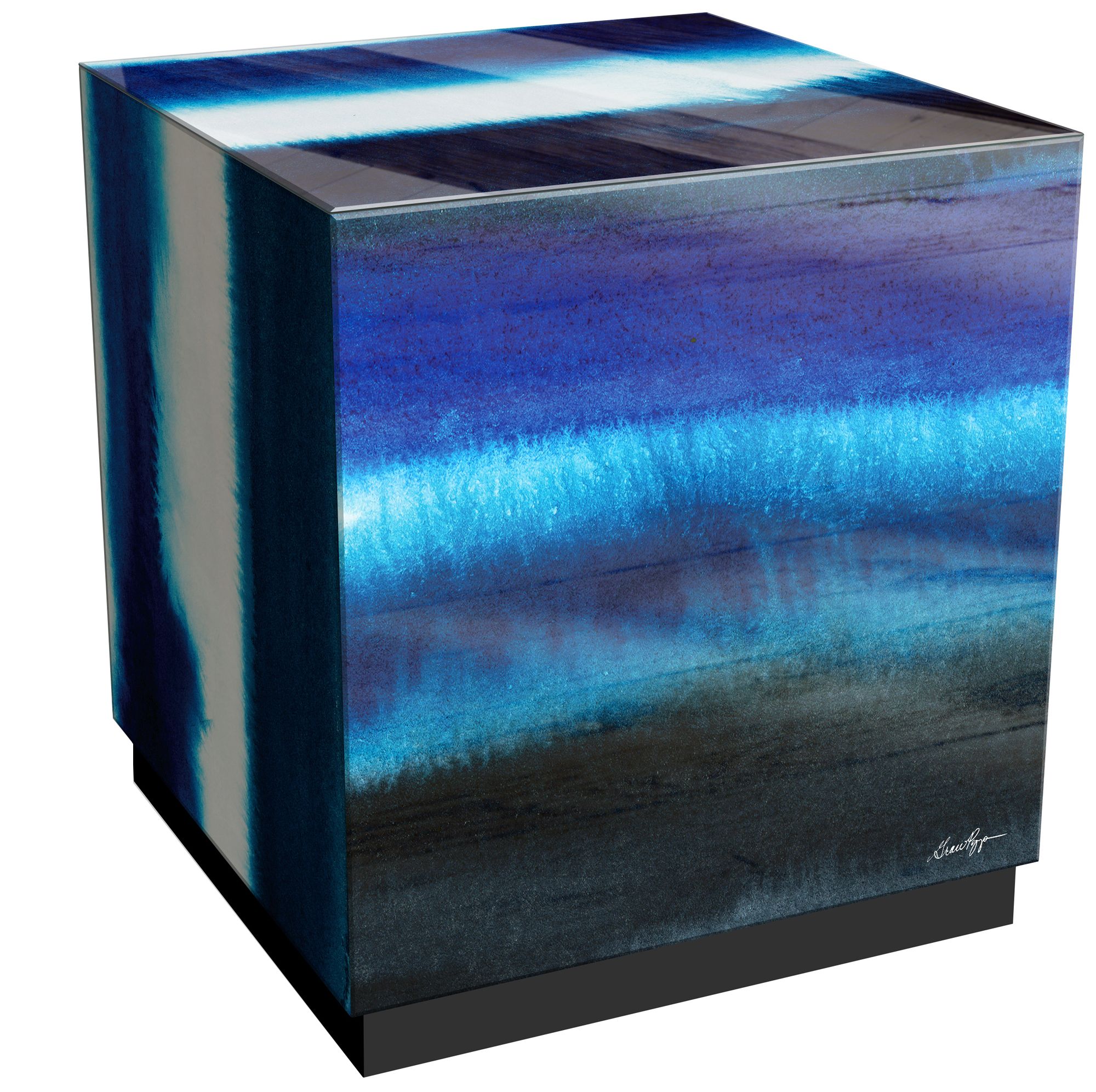 Blue Run Off II" Reverse Printed Beveled Art Glass Lamp Table