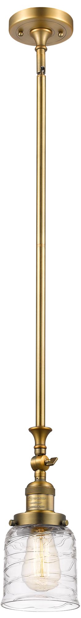 Bell 5" Brushed Brass Stem Hung Mini Pendant w/ Deco Swirl Shade