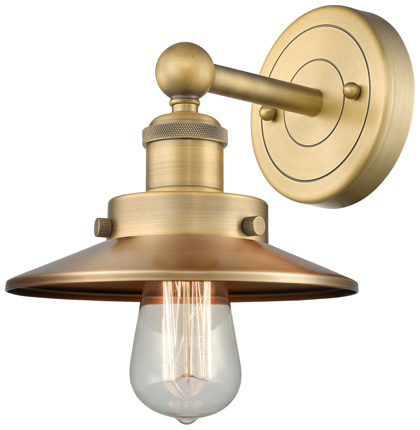 Railroad 8"High Brushed Brass Sconce With Brushed Brass Shade