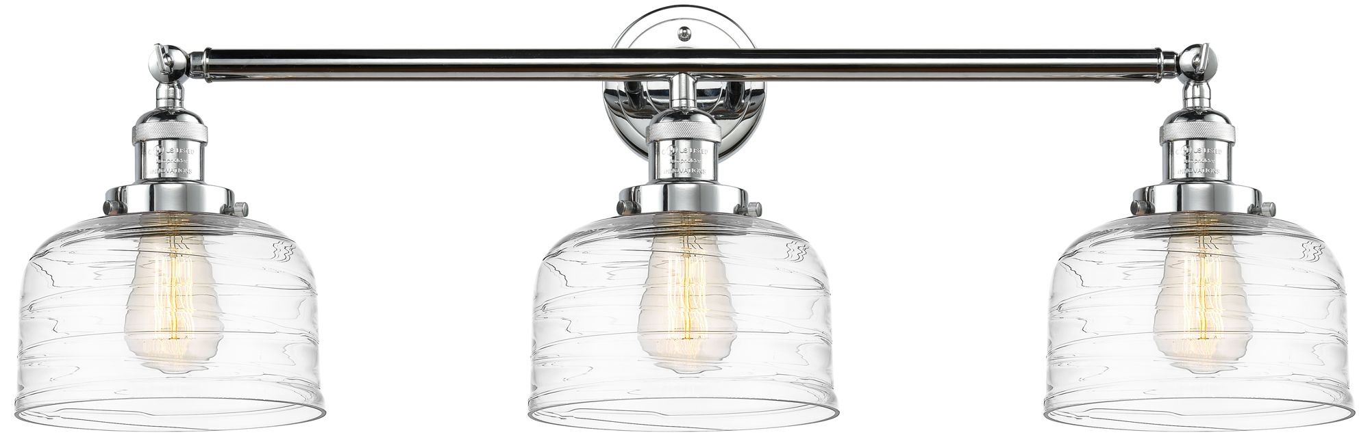 Bell 3 Light 32" Bath Light - Polished Chrome - Clear Deco Swirl Shade