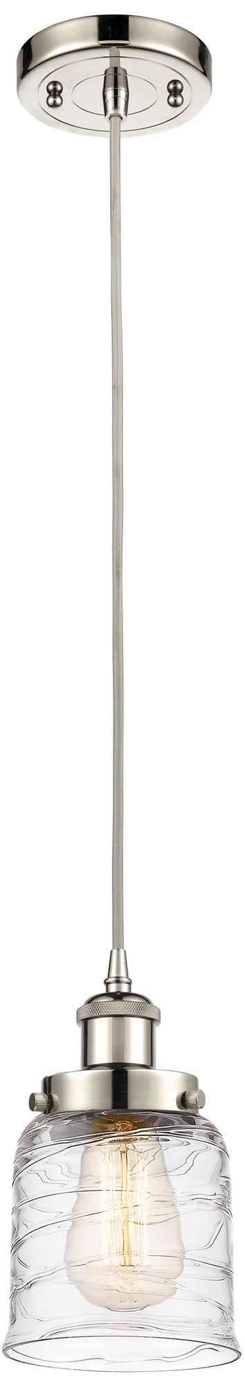 Ballston Urban Bell 5" Polished Nickel Corded Mini Pendant w/ Deco Sha
