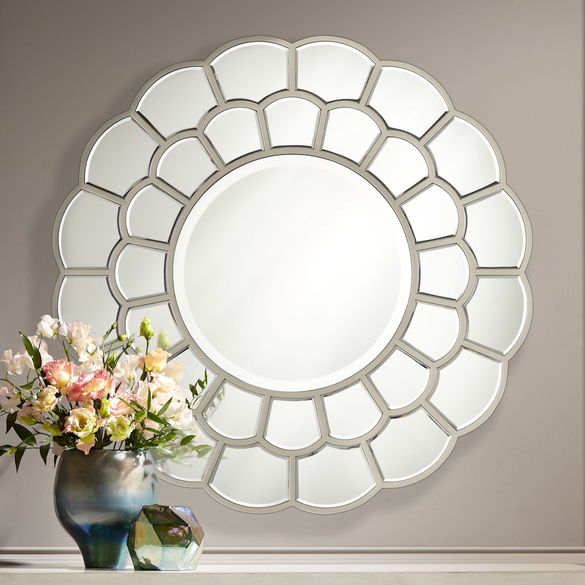 Possini Euro Sunshine Light Champagne 32" Round Framed Wall Mirror