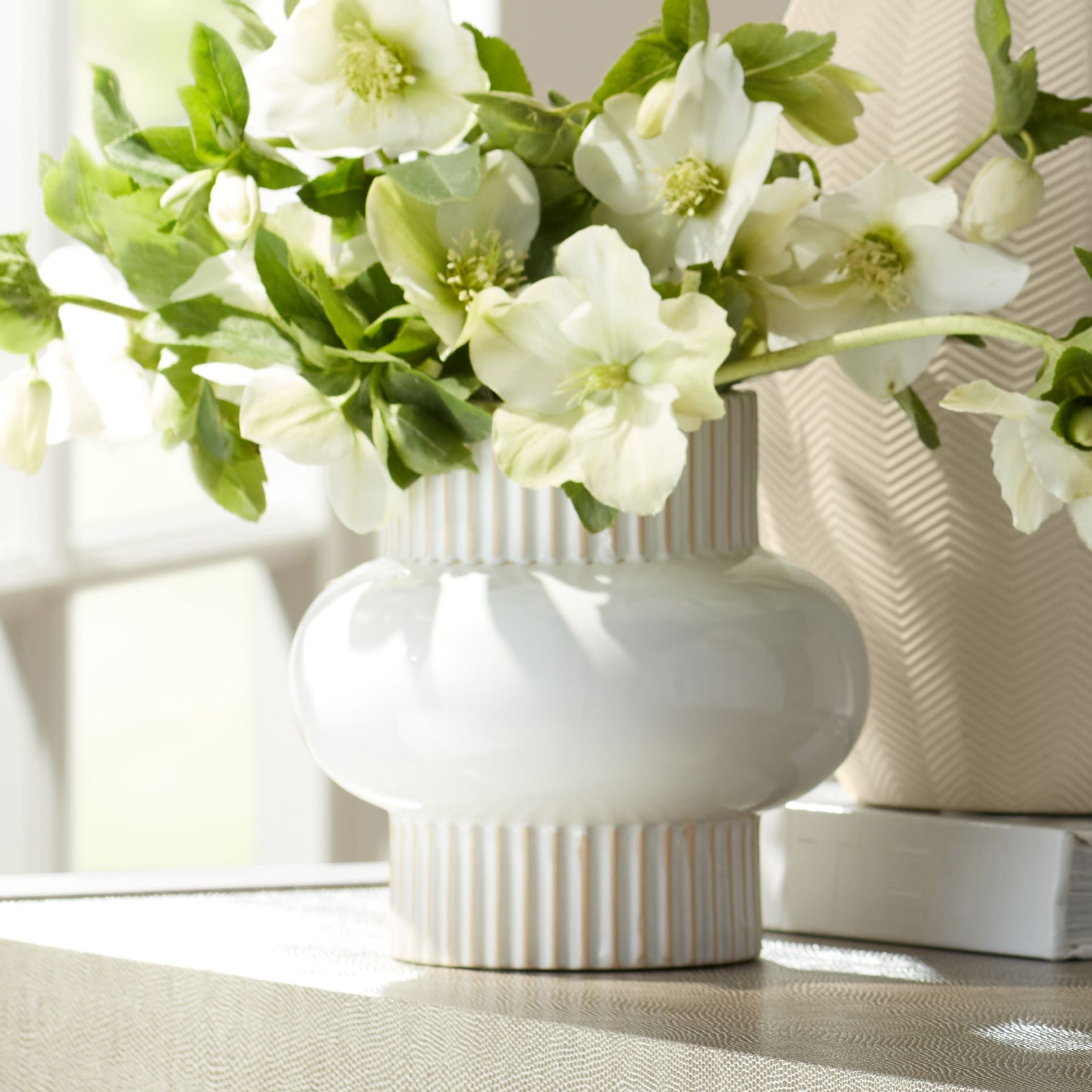 Rounded Center 6 1/2" High White Porcelain Decorative Vase