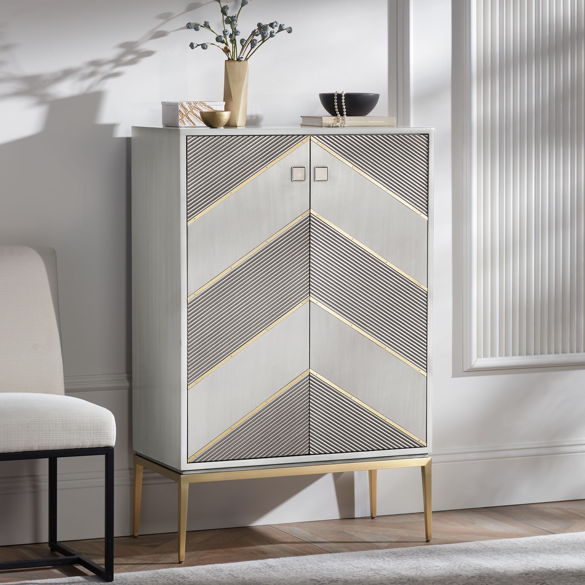 Highland 48 1/2" High Gray and Champagne Chevron 2-Door Accent Chest