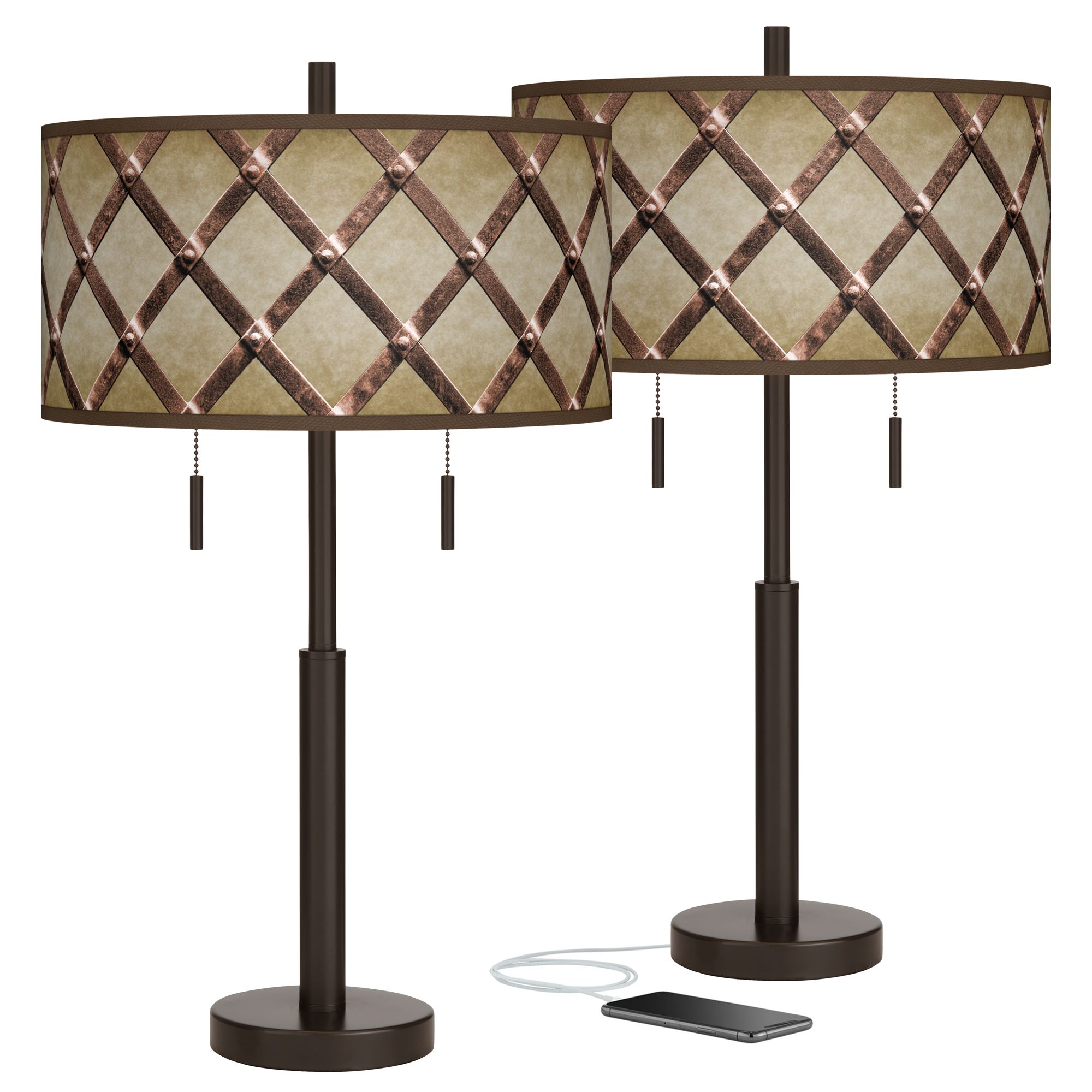 Metal Weave Robbie Bronze USB Table Lamps Set of 2