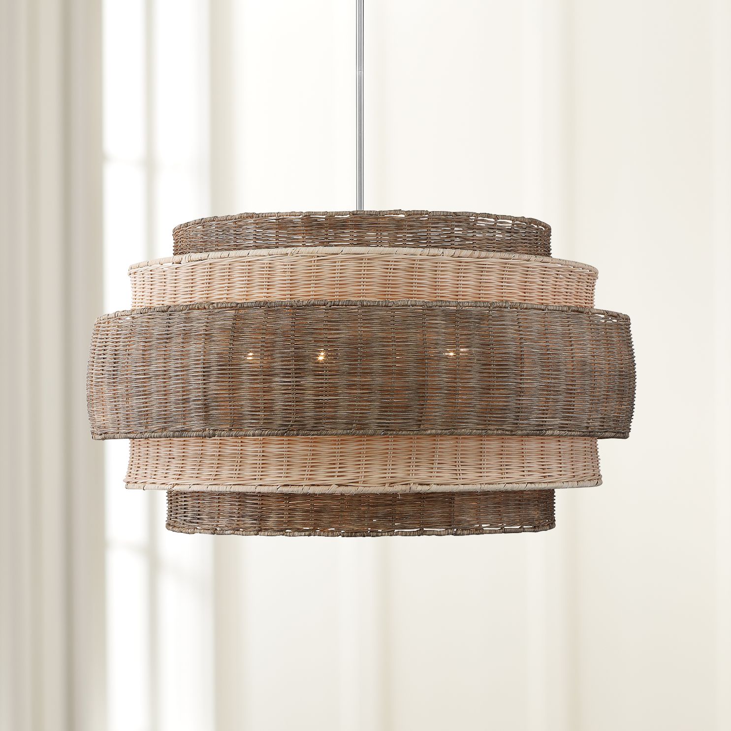 Montauck Bay 20"W Nickel and Rattan 4-Light Pendant Light
