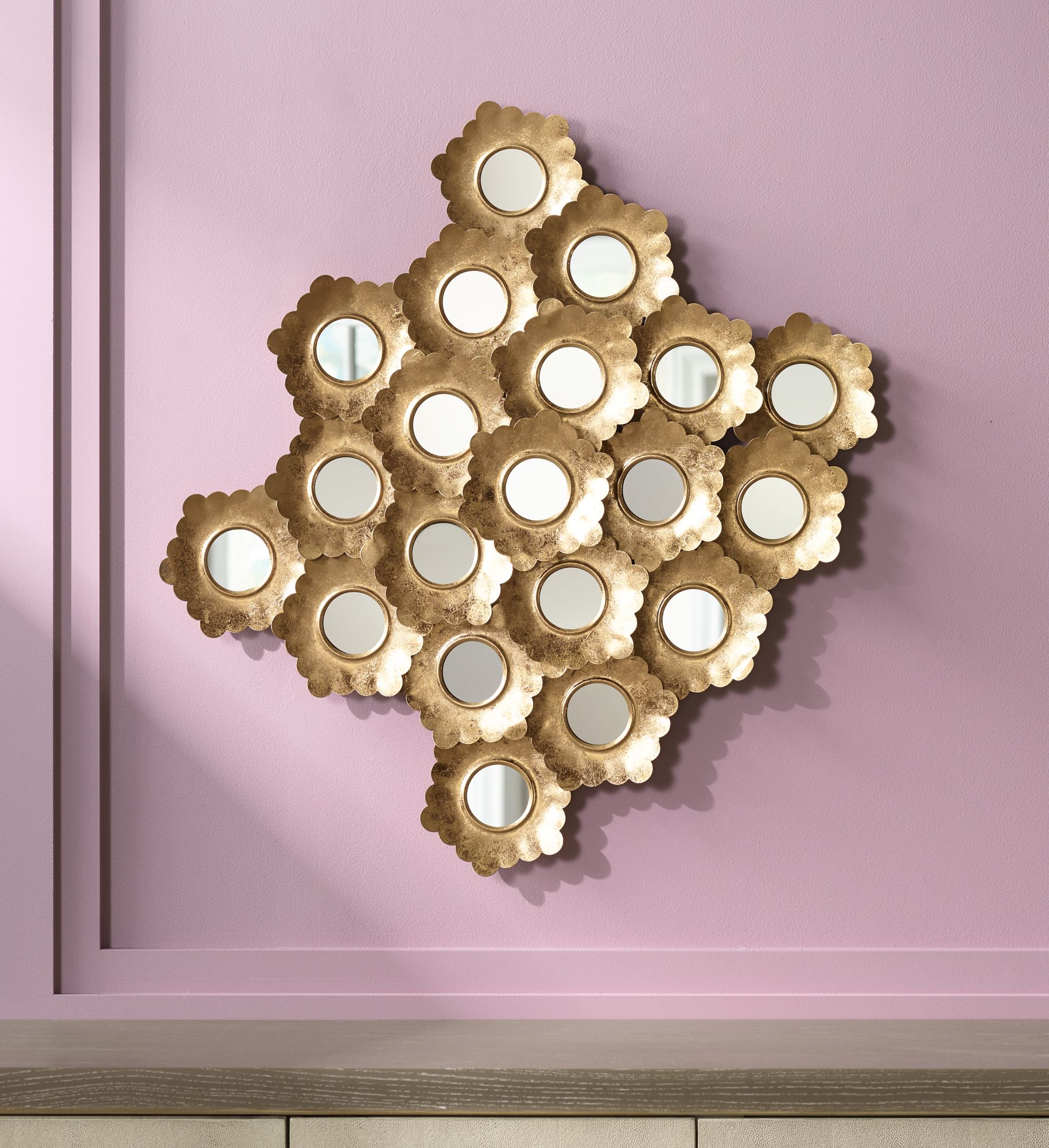 Abstract Floral Gold Leaf 29" High Mirrored Wall Art