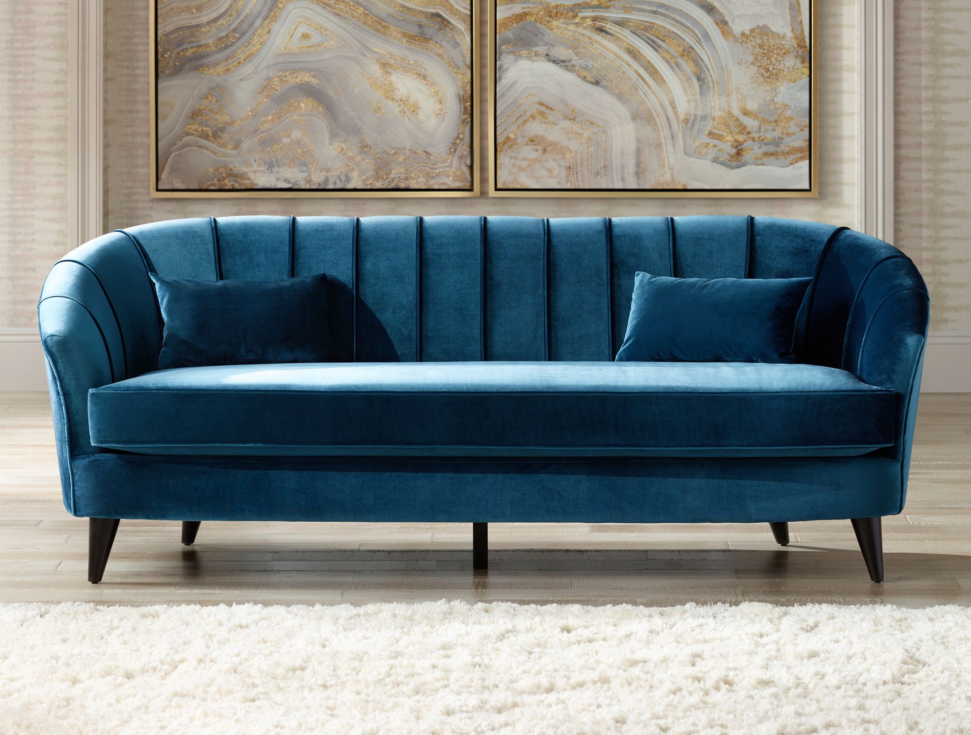 Namora Plush Layered Teal 83 3/4"W Modern Sofa with Pillows