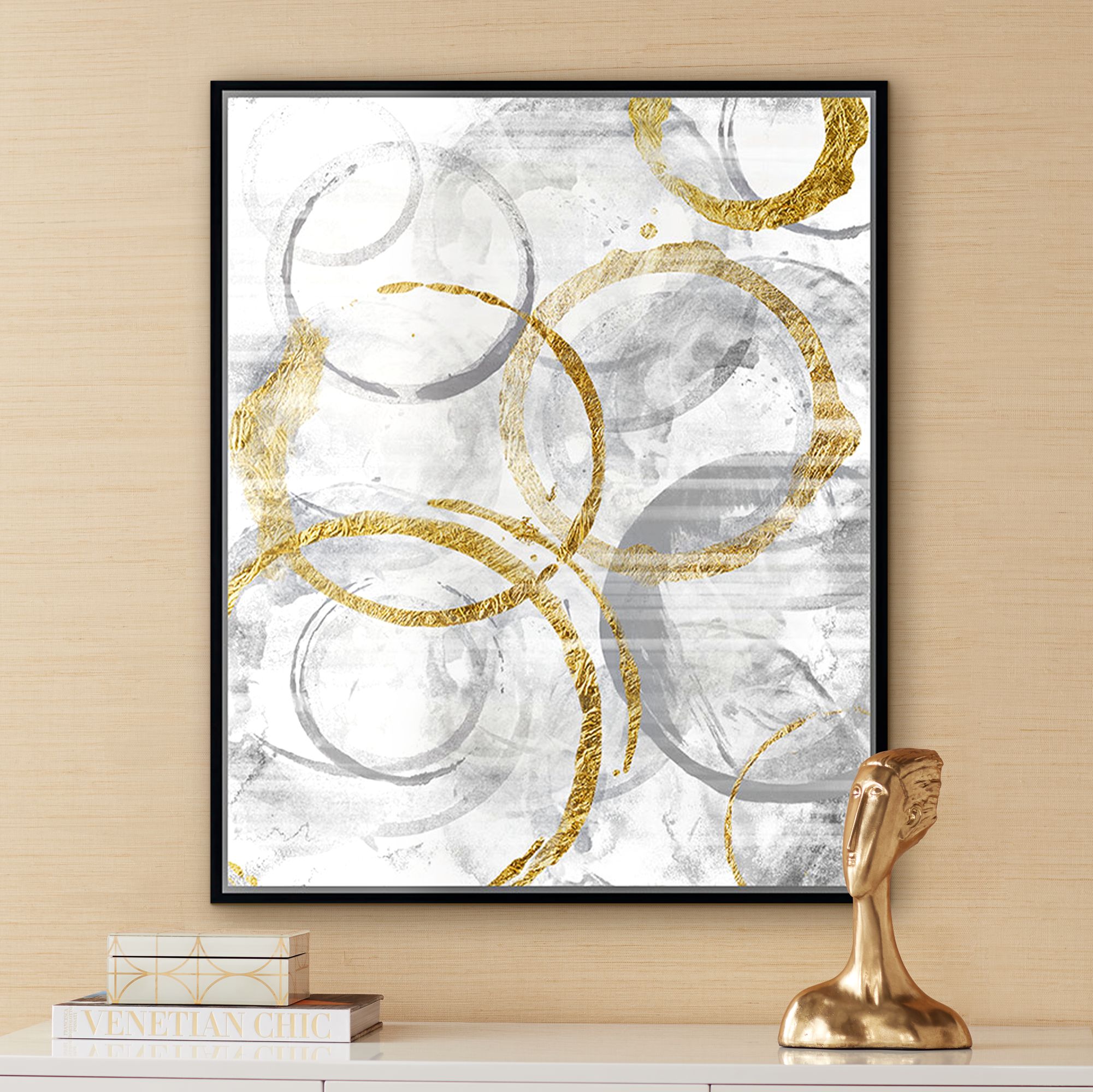 Golden Circles II 37 3/4" High Framed Canvas Wall Art
