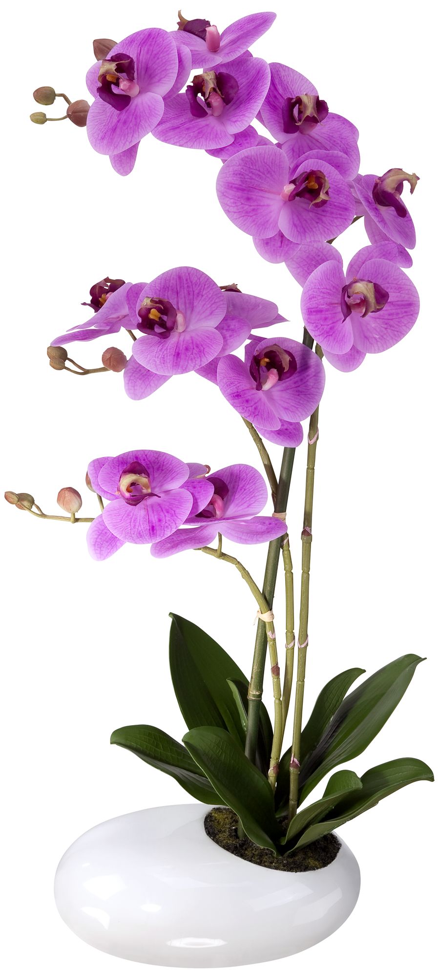 Fuchsia Phalaenopsis Orchid 21"H Faux Floral in White Pot