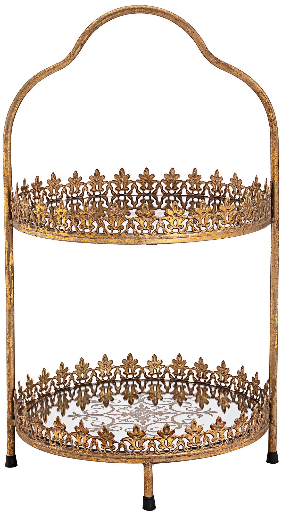 Fleur de Lis Bronze Gold 21 1/2" High Two Tier Cake Stand