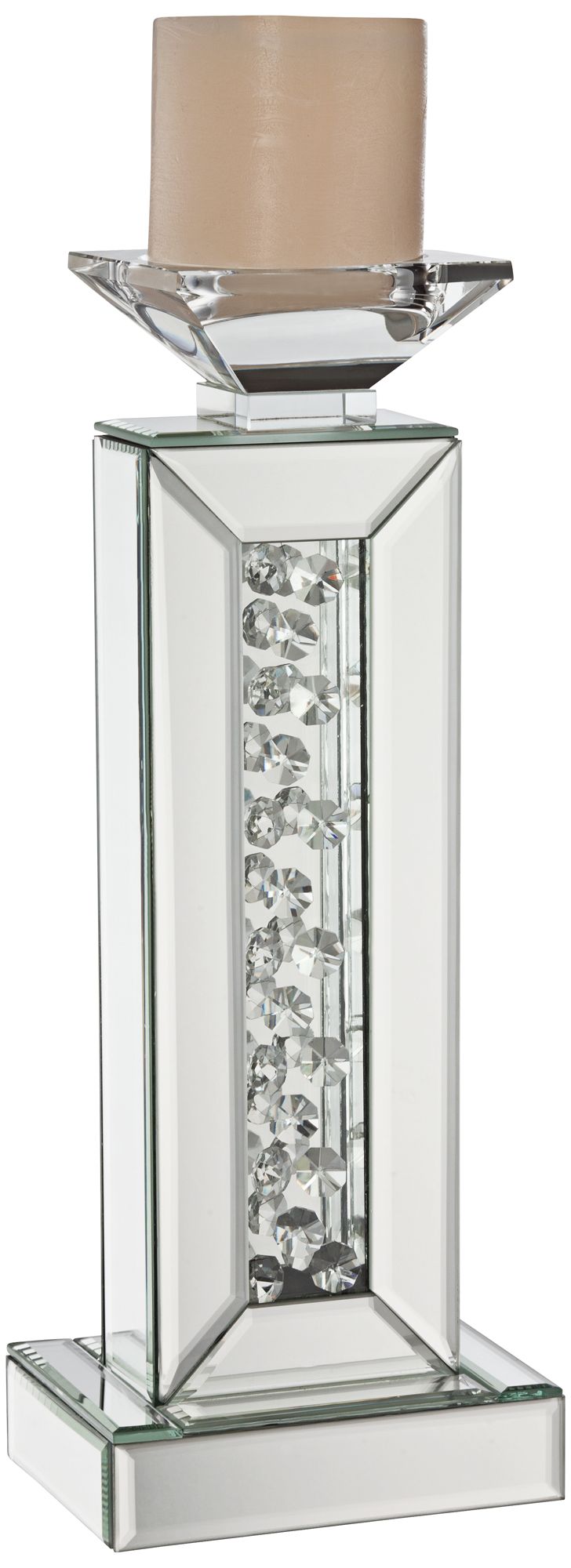 Marilu 13 3/4" High Mirror and Crystal Bead Candle Holder