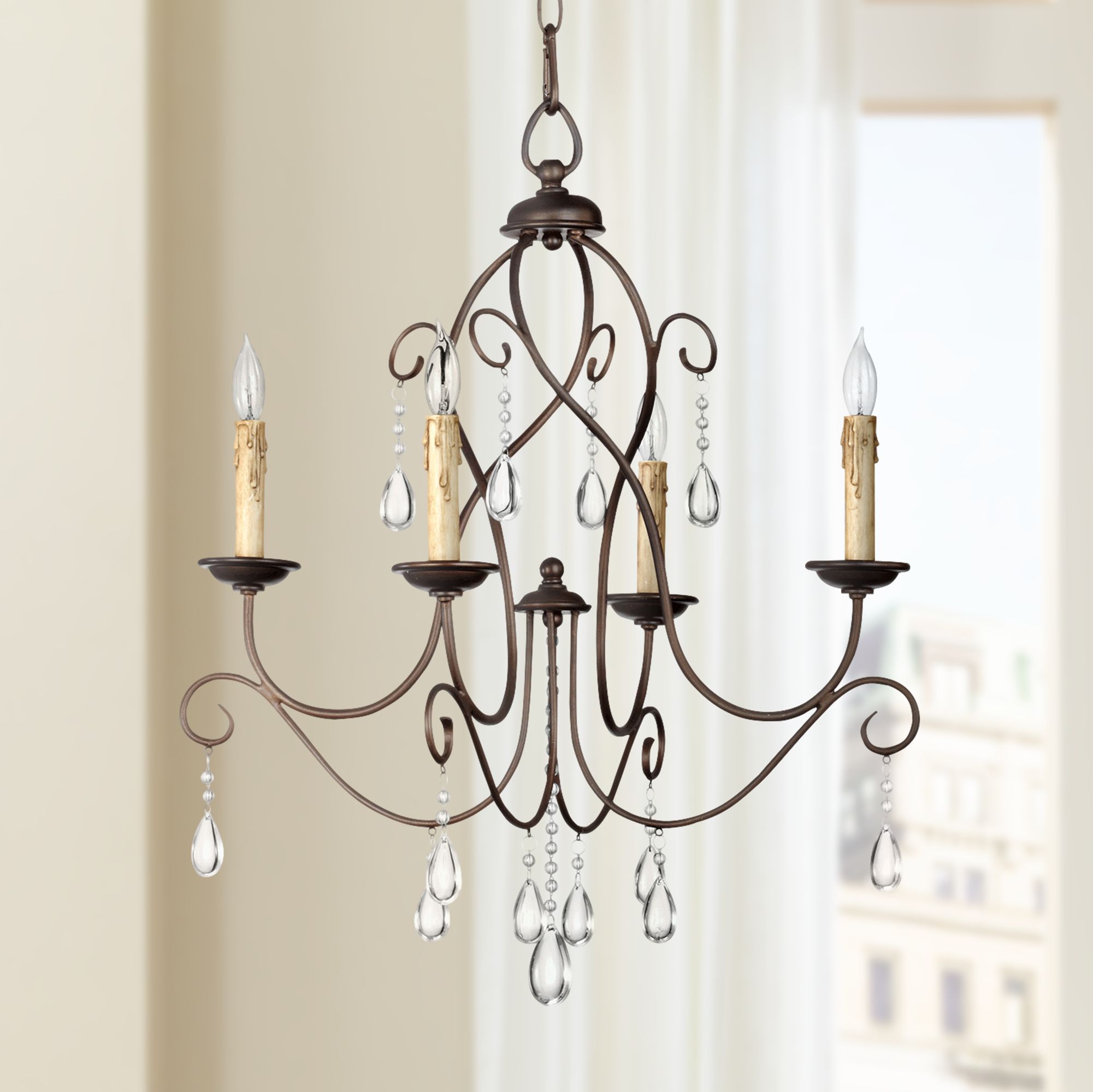 Quorum Cilia 22" Wide Oiled Bronze and Crystal 4-Light Chandelier