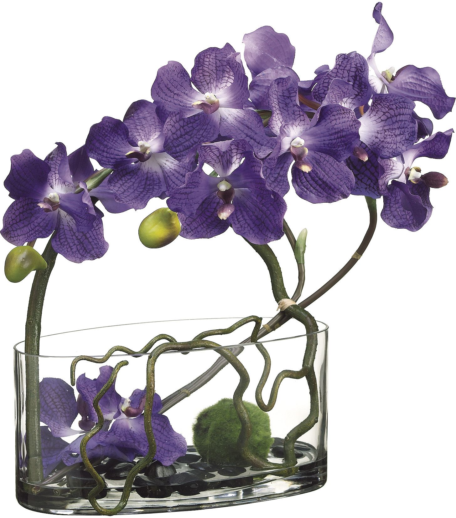 Vanda and Moss Ball 18" High Faux Floral Arrangement