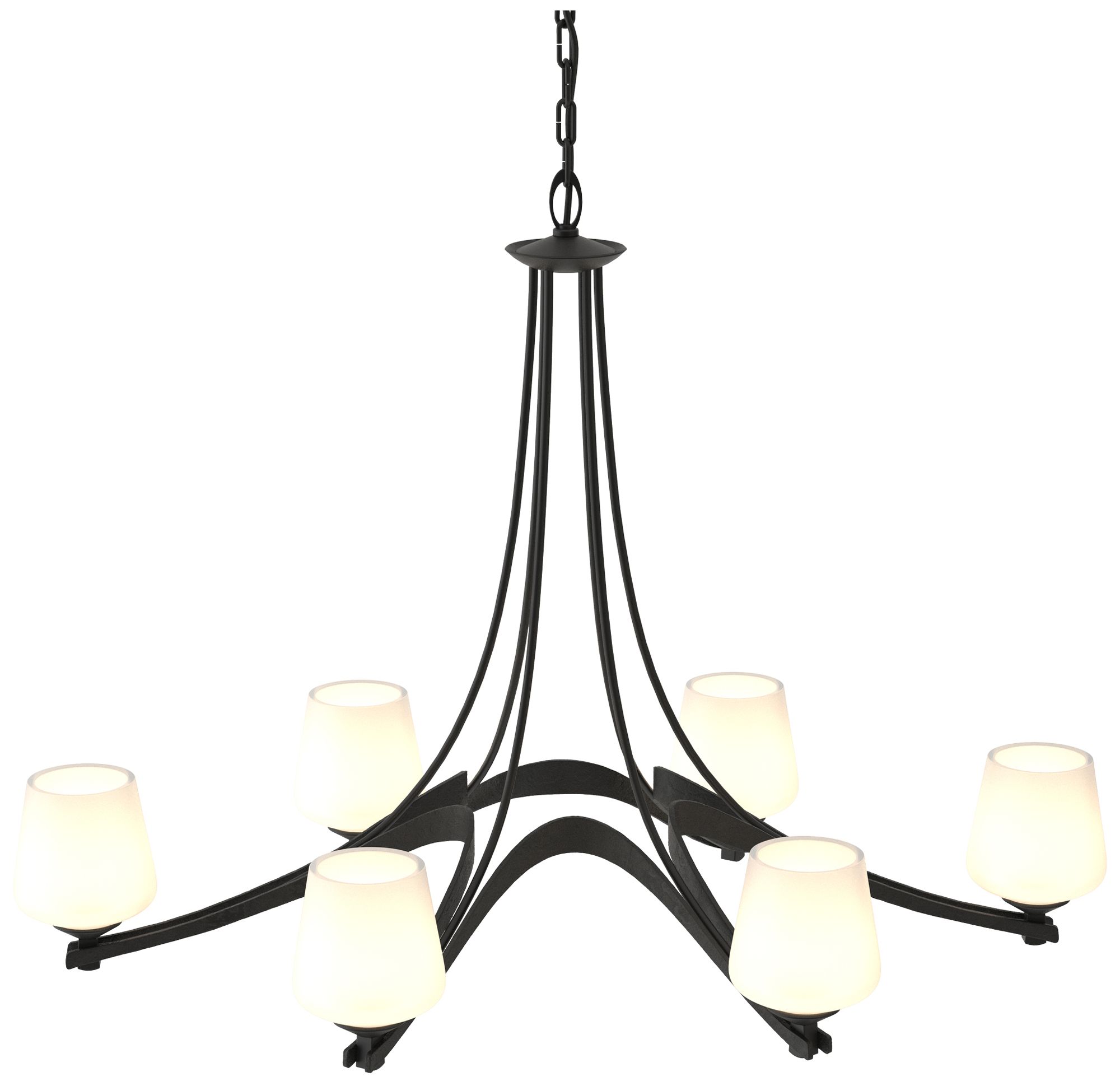 Oval Ribbon 38.5" Wide 6 Arm Black Chandelier With Opal Glass