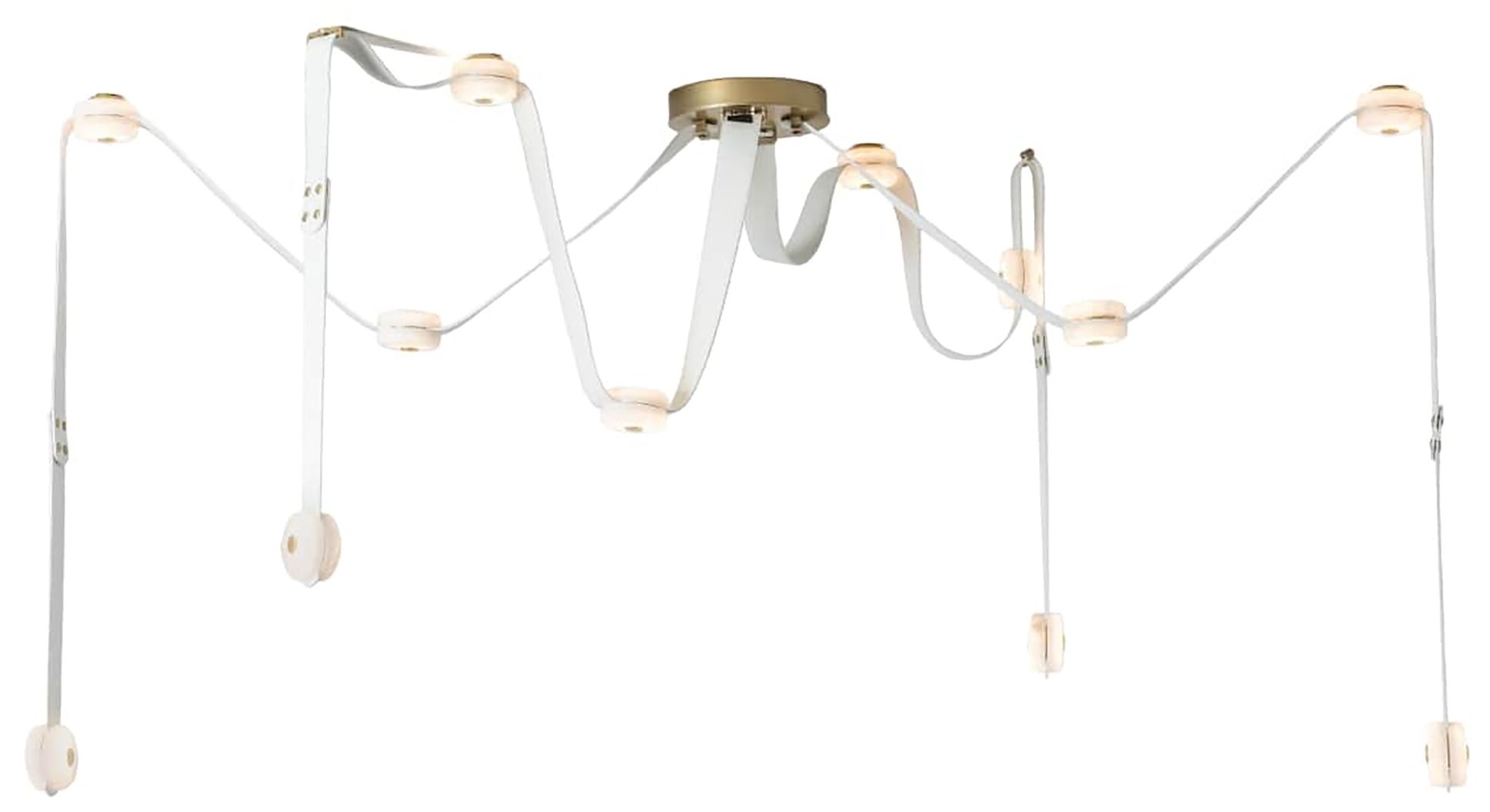 SNAPS 86.5" Wide Large White Leather Accented Modern Brass LED Pendant