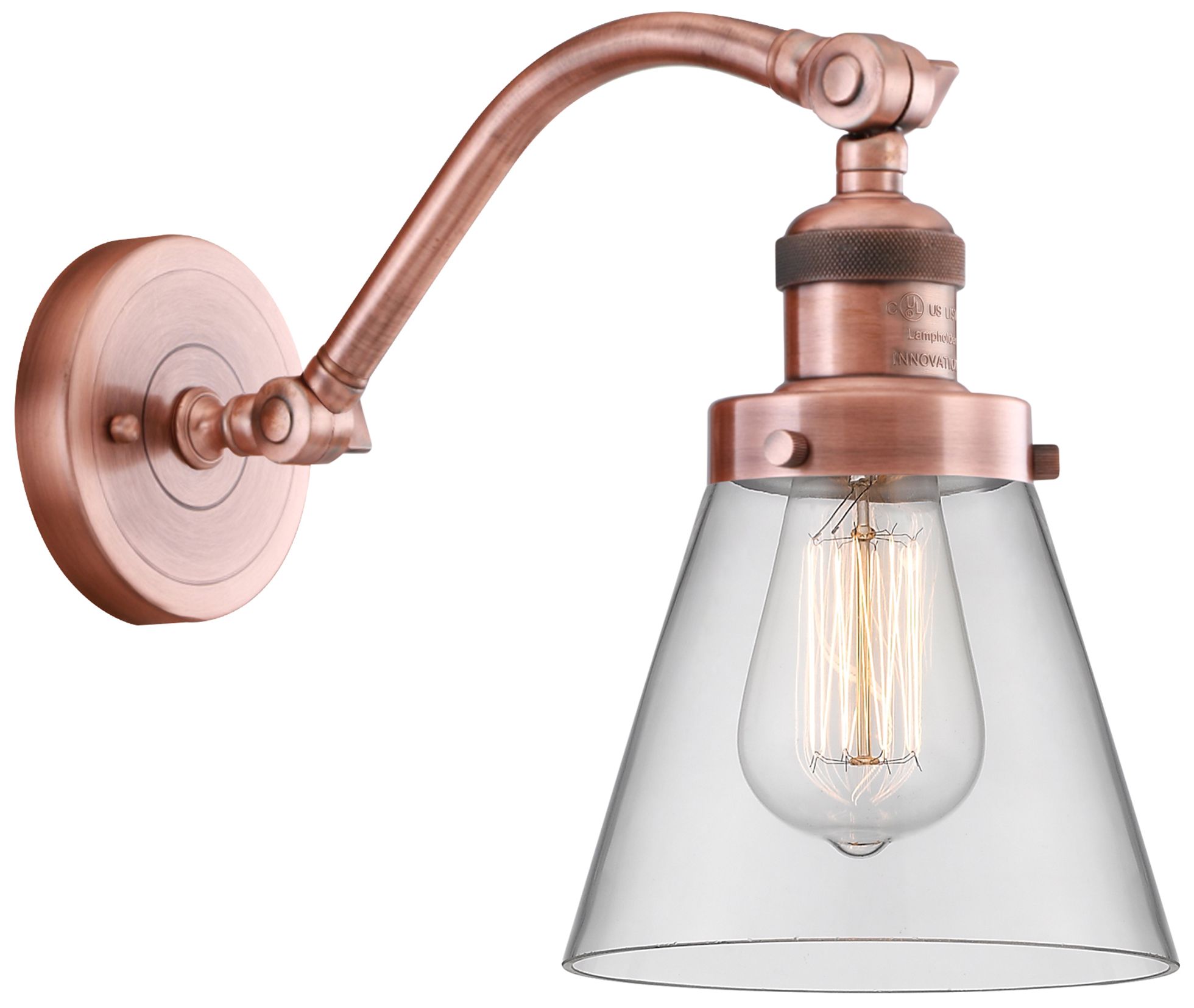 Cone 7" Antique Copper Sconce w/ Clear Shade