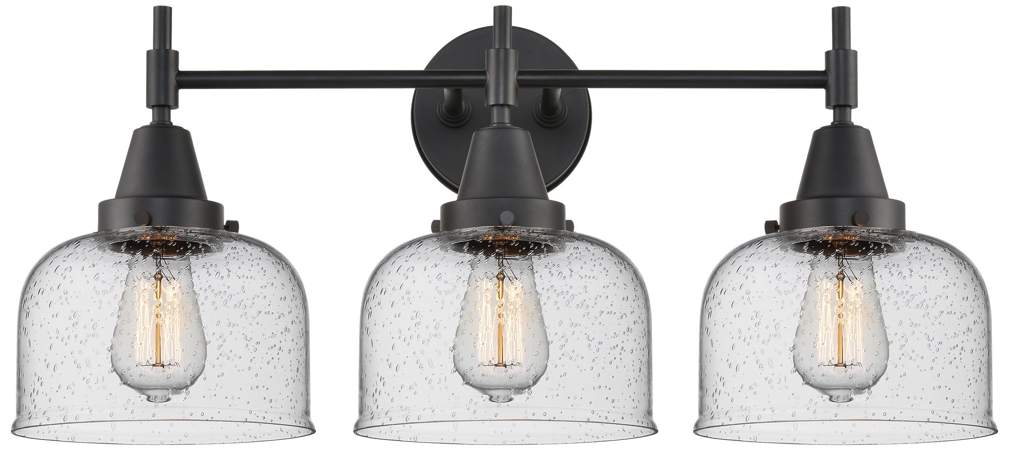 Caden 26" Wide 3 Light Matte Black Bath Vanity Light w/ Seedy Shade