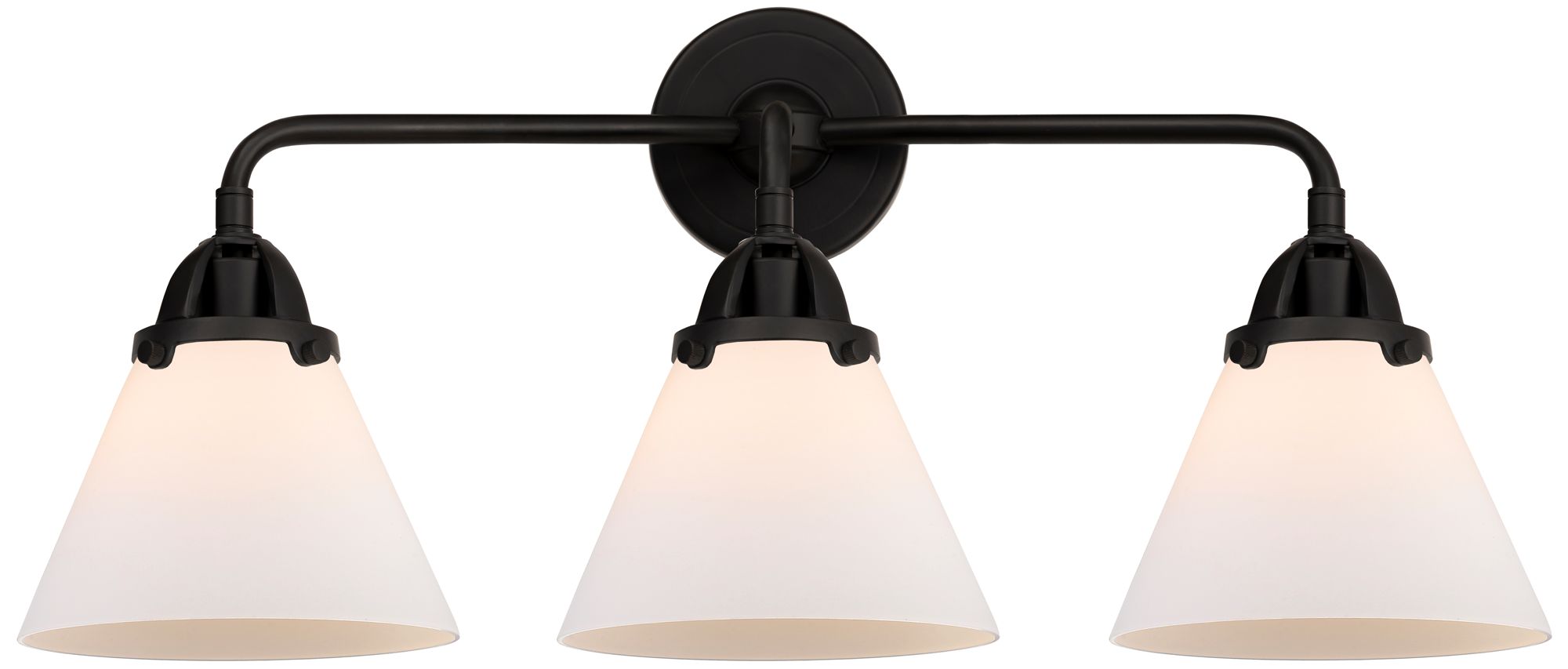 Nouveau 2 Cone 8" 3 Light 26" LED Bath Light - Matte Black - Whit