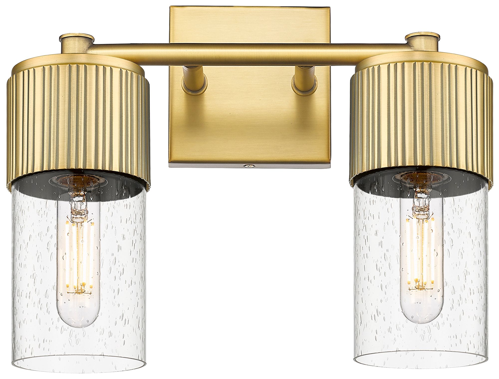 Bolivar 9.5" High 2 Light Brushed Brass Sconce With Seedy Glass Shade