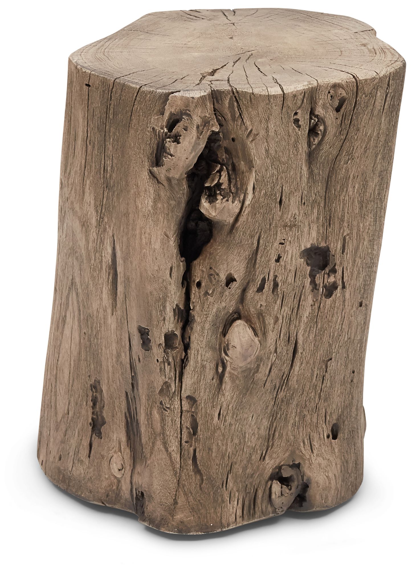Brooks Solid Wood Stump 13" Wide Sandblasted Grey Accent Stool